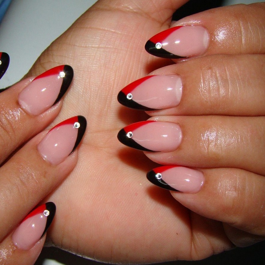 - Френч «вампирская готика» — выделяющийся красный край ногтя с ярко-белым или насыщенно-черным покрытием основы.