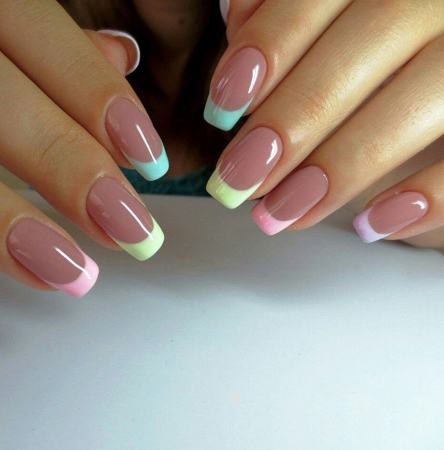 - двойной френч в розовых, мятных, голубых или иных оттенках;