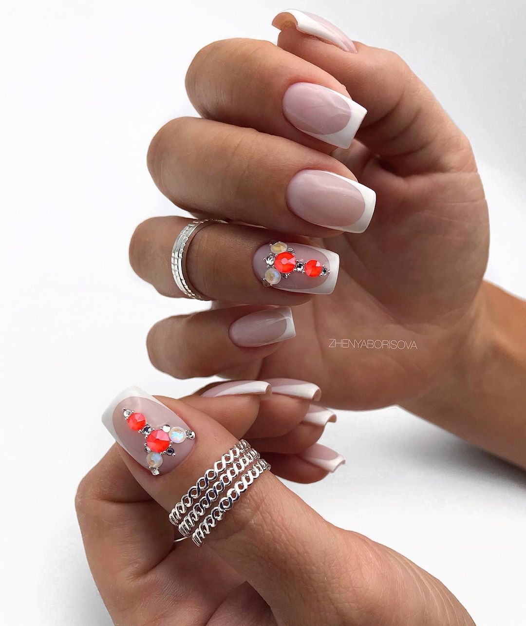 - френч и стразы/камни небольшого размера;