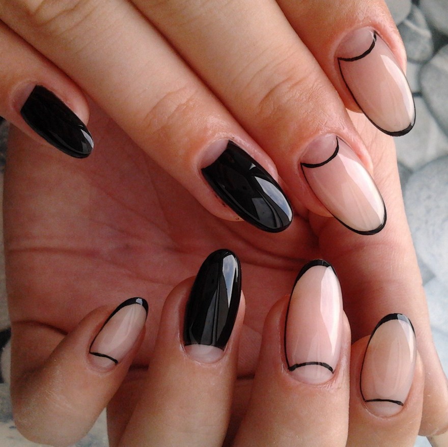 И снова нюд! Нюдовый маникюр с черными деталями — еще одна классическая идея, которая появится в трендах с конца лета и будет в моде до конца 2024 года. Экспериментируйте с нюдовым гелем, добавляя тонкие черные полосы, абстрактные узоры или геометрические элементы.