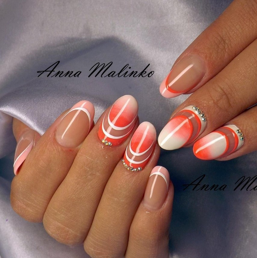 - Нюдовая база и яркие ободки.