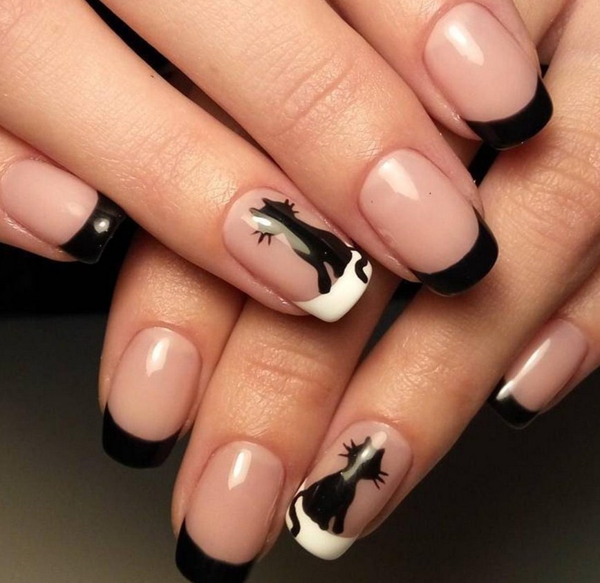 Для коротких ногтей идеально подходит овальная форма. Летом можно сделать радужный дизайн. Особенно шикарен неоновый обратный френч. Весна должна сопровождаться нежными оттенками. Можно внести немного разнообразия и поменять форму «улыбки». Осенью и зимой маникюр можно разбавить тематическими рисунками или узорами.