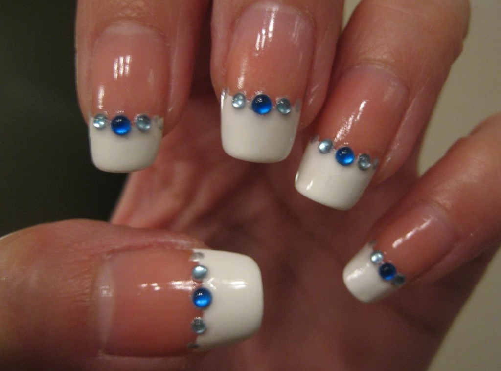 Дизайн маникюра френч с блестками и стразами