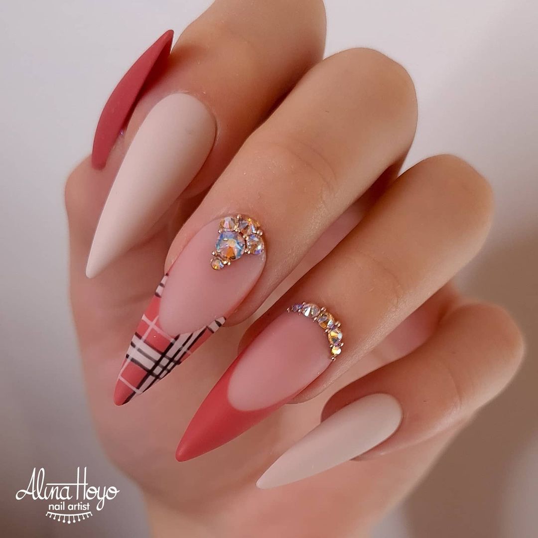 Трендовое матовое покрытие выглядит свежо и привлекательно, создавая выгодный контраст с сияющими стразами.