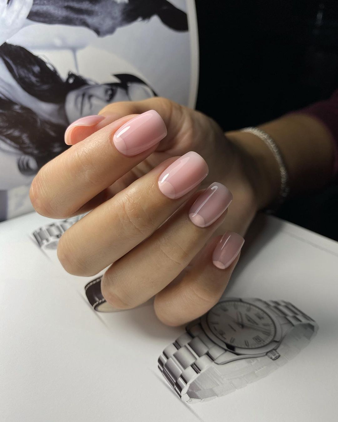 Простой, но элегантный, этот стиль подразумевает нанесение прозрачного лака или гель-лака. Это помогает придать ногтям естественный и здоровый вид.