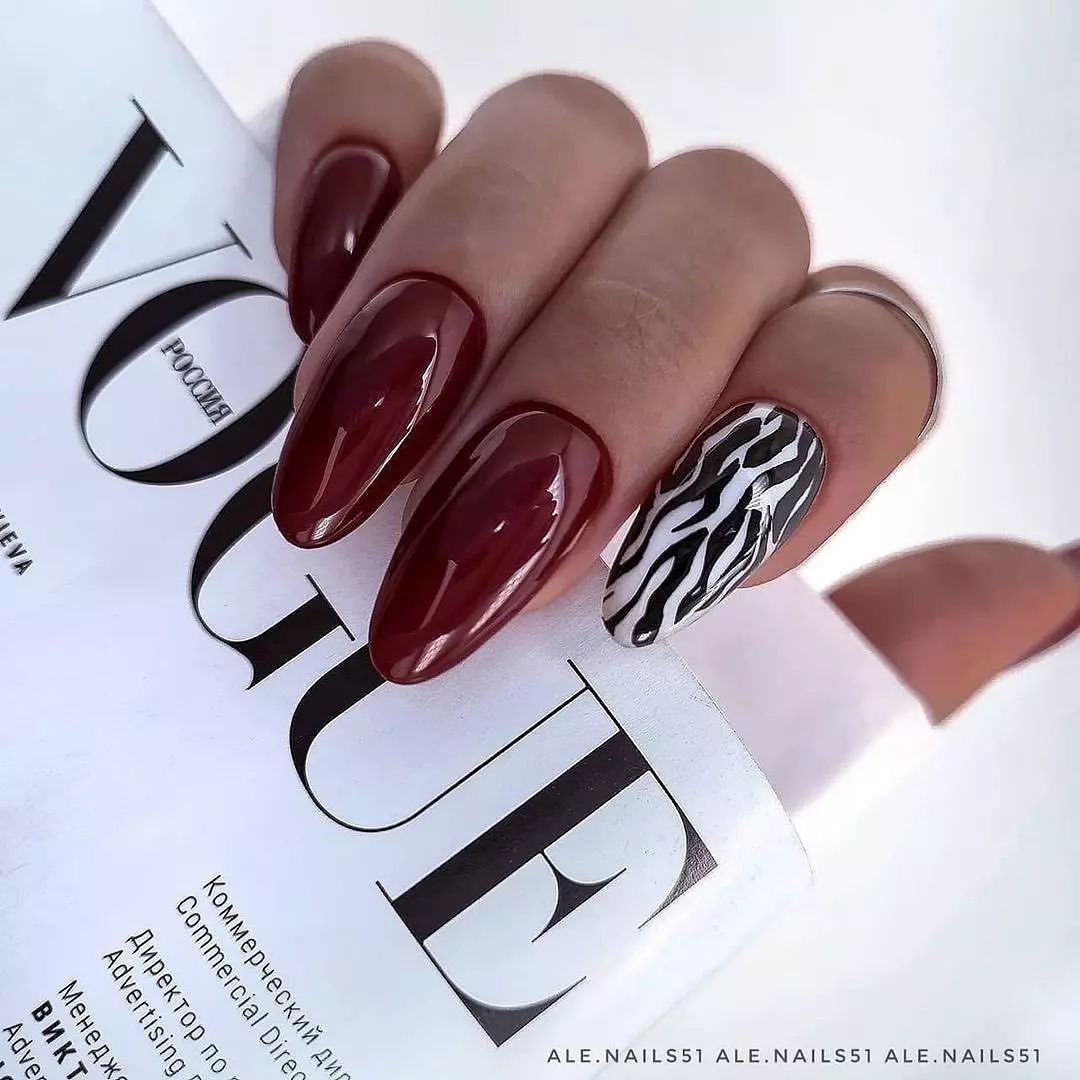 Бордовый – это один из самых популярных цветов маникюра в ноябре, потому что он добавляет глубину и тепло в зимние дни. Глубокий бордовый – это отличный выбор, потому что он выглядит очень элегантно и празднично.