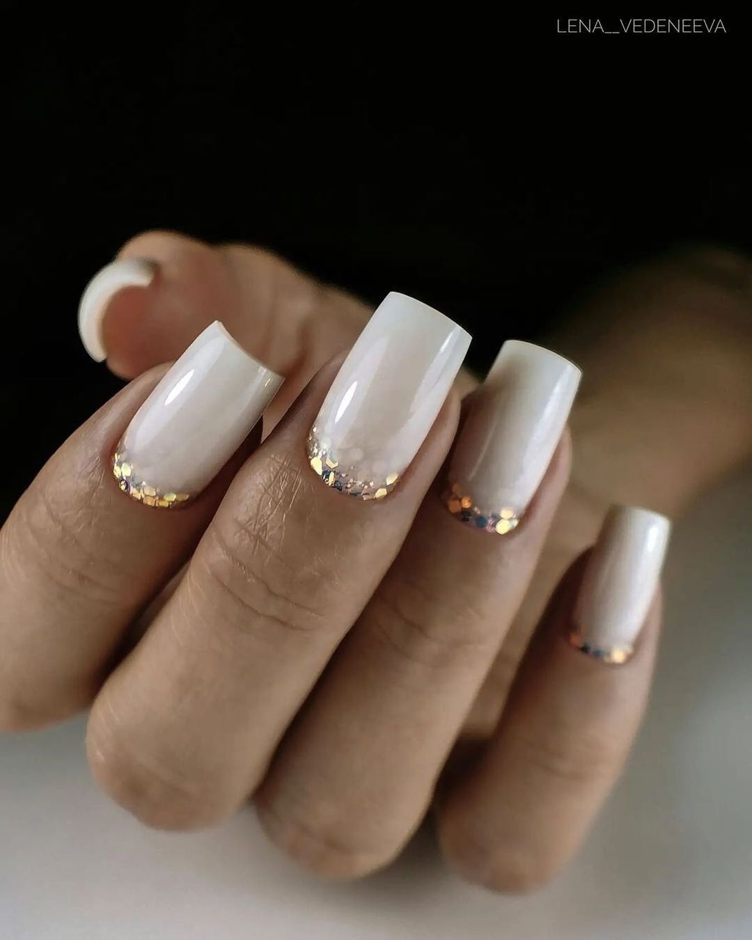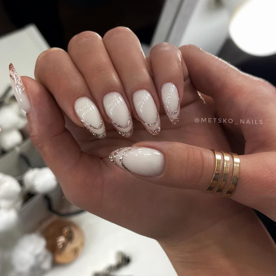- Короткие ногти: если вам нравится короткая длина ногтей, то вы можете выбрать маникюр французский маникюр, который никогда не выходит из моды. Вы также можете попробовать нанести блестки, переходящие в мерцающие цвета, или просто выбрать нейтральный лак, который дополнит ваш повседневный наряд.