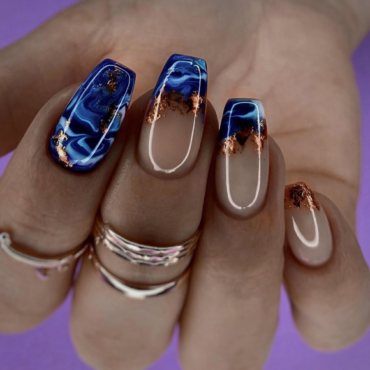 Мраморный эффект придает ногтям изысканный и стильный вид. Используйте мраморные специальные лаки или создайте мраморный эффект с помощью маникюрных гель-лаков и техник мраморирования.