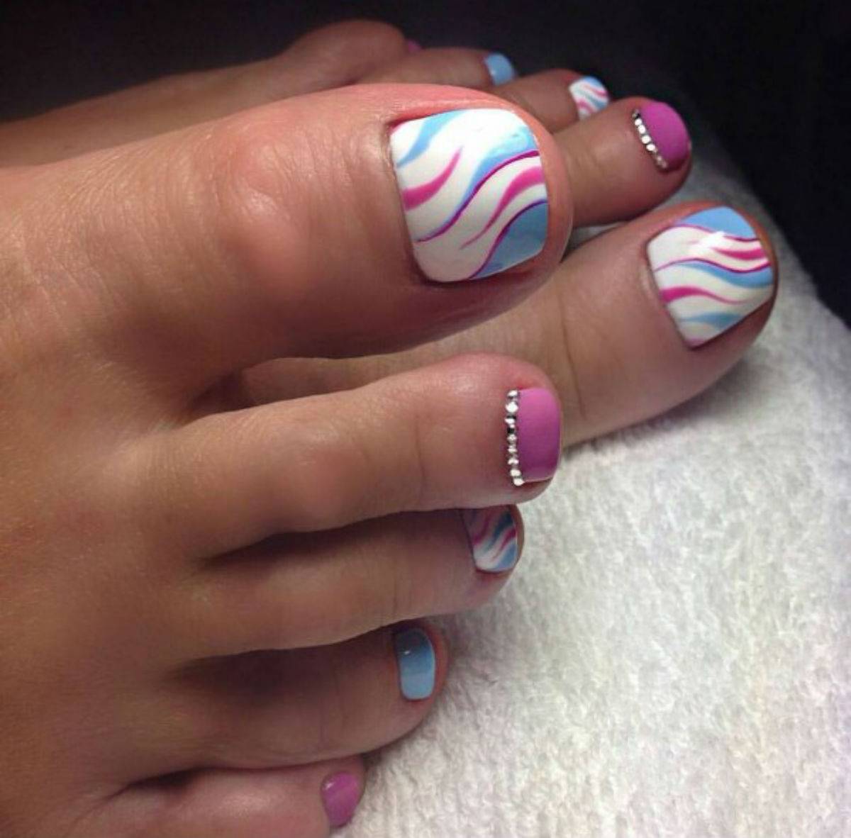 А дополнив такой дизайн стразами или рисунком вы сделаете ваш педикюр более изысканным.