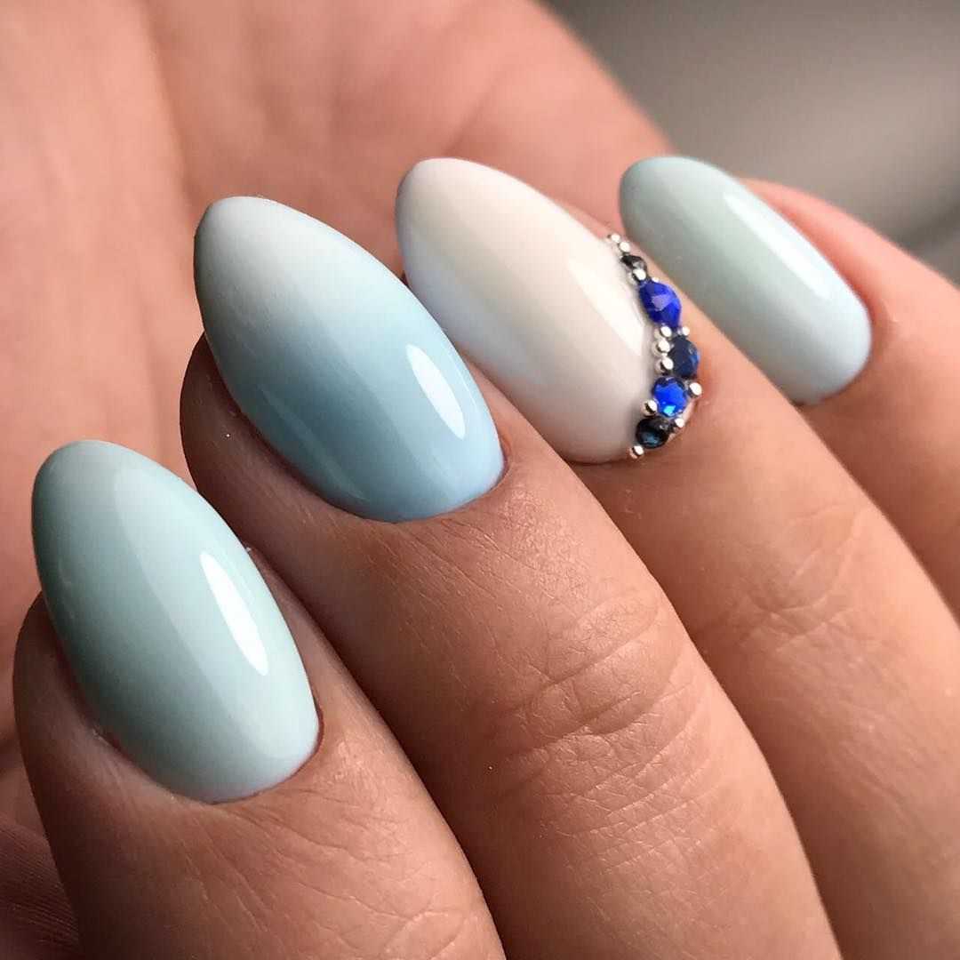 Когда приходит время отпуска, наши мысли уносят нас далеко на море, где нет работы и прочей суеты. В 2022-2023 году в морском стиле маникюра, большую популярность набирают простые формы и минималистичный дизайн. Стоит лишь покрыть все ноготки синими полосками или на одном ногте нарисовать штурвал, как вы сразу обозначите морскую тематику. Градиентный переход от голубого к синему — еще один из вариантов для морской темы.