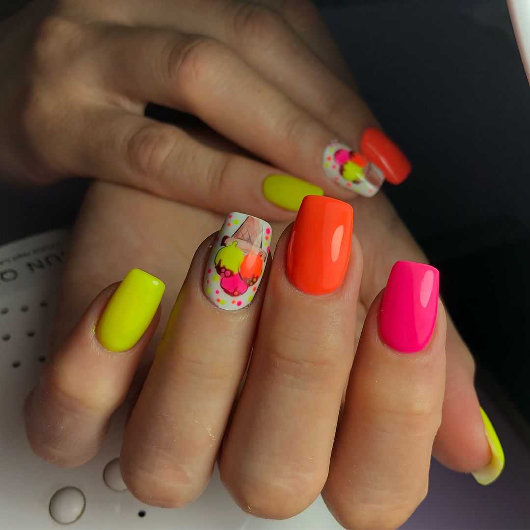 Кислотные оттенки лаков – еще один вариант неудачного маникюра. Они сочетают в себе вульгарность и ненужную яркость.