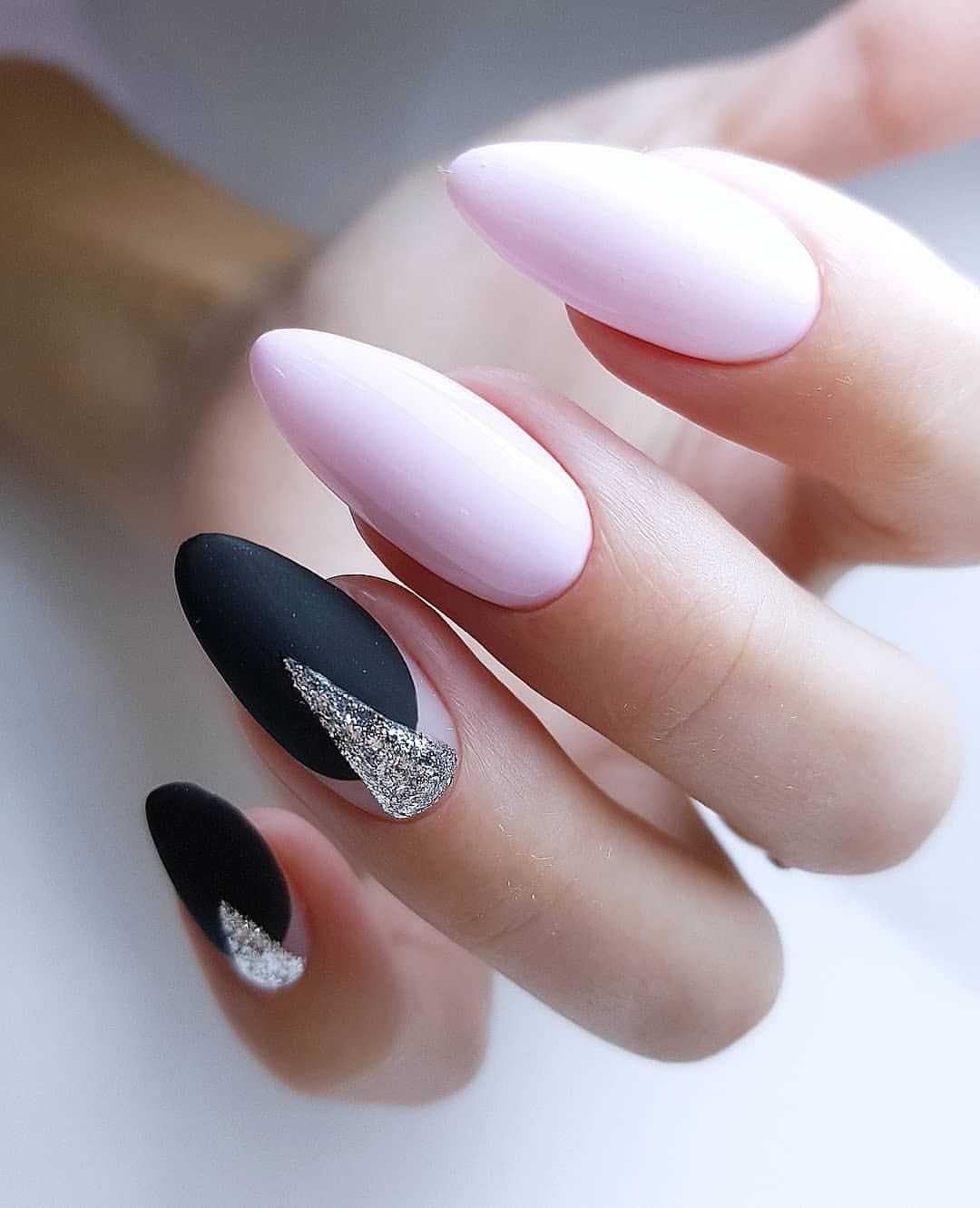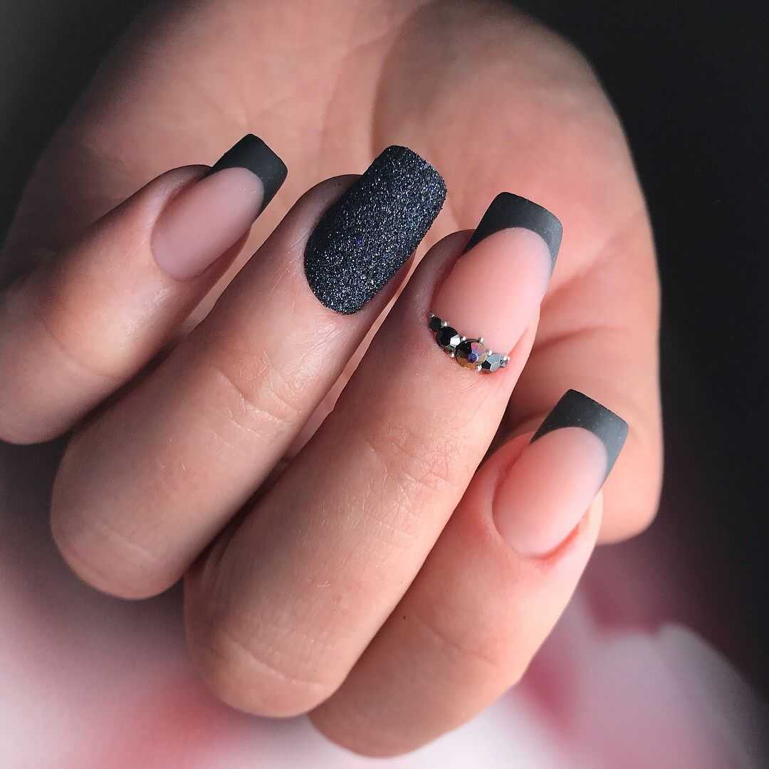 При его создании можно задействовать оттенки с перламутровым переливом или дополнить его блестками. Самый универсальный маникюр – «черный мрамор», который подходит под все наряды.