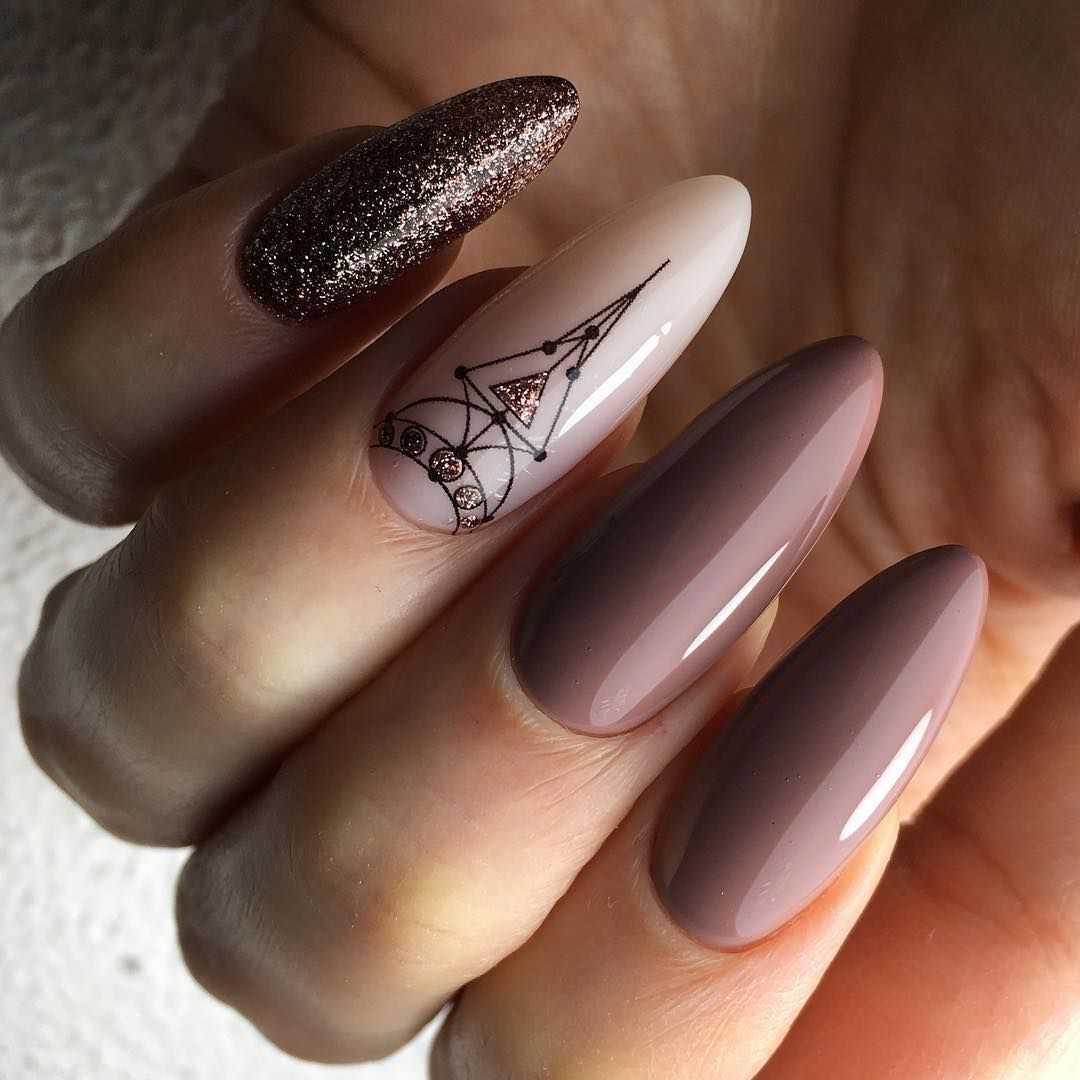 Такой дизайн предполагает использование нейтральных оттенков в качестве основы. Разнообразить его помогут минималистические или абстрактные принты, полоски, узор в стиле перепелиных яиц. Нюд – это тот естественный цвет маникюра, который нравится мужчинам больше всего.