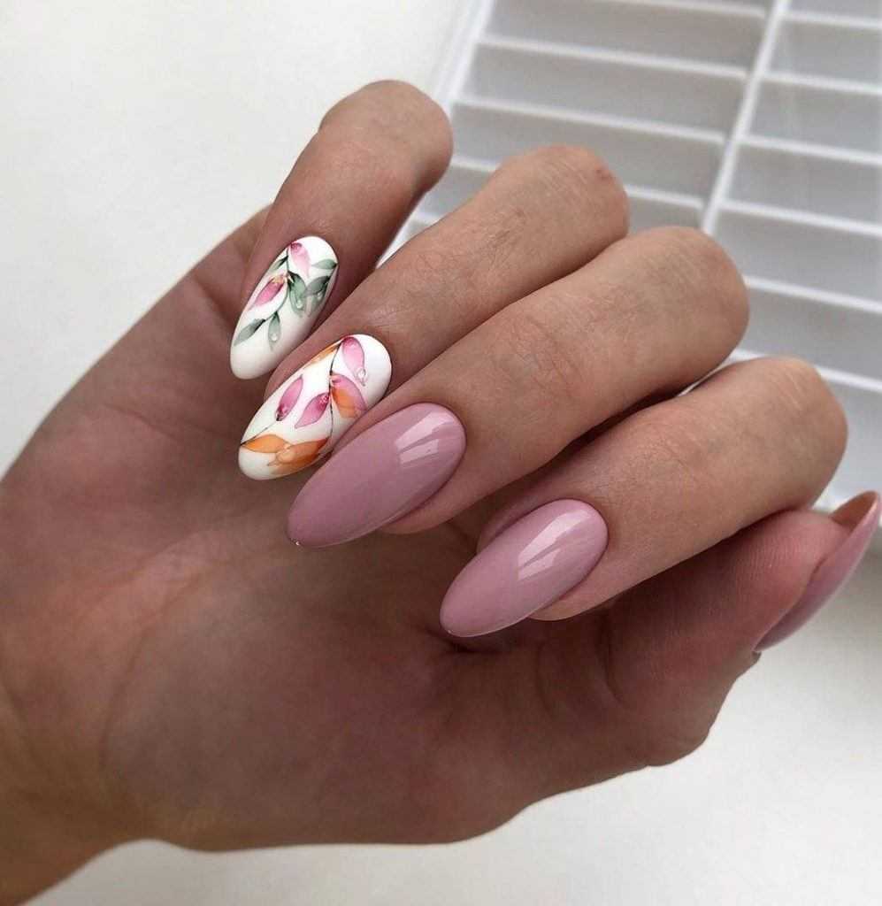 Флористика придает маникюру особой нежности и женственности. Главное, чтобы цветы гармонично вписывались в дизайн и не занимали собой все пространство. Чтобы понравиться мужчине, для элегантного образа достаточно 1-2 принтов на женских ноготках.