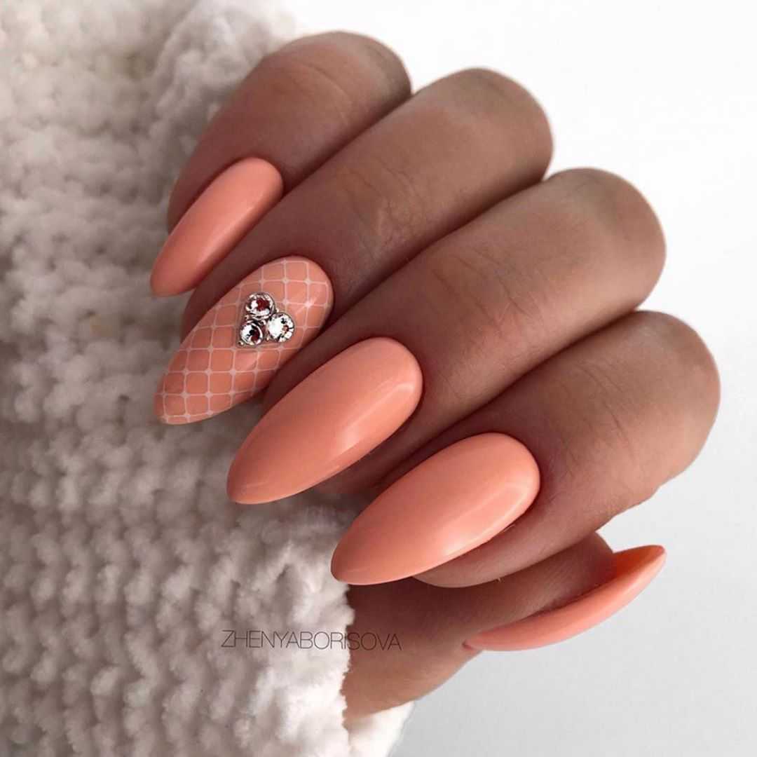 Теплый персиковый цвет лака также вызывает приятные эмоции у мужчин. Подсказываем, что такой оттенок выигрышно комбинируется с заостренной или квадратной формой ногтей