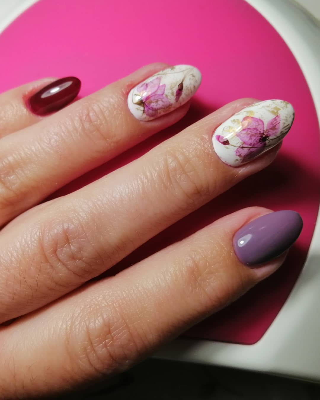 - цветочные бутоны, веточки и листья, в зависимости от выбранных красок и размеров, украсят ногти любых форм и размеров. Пышные цветы, акварельные рисунки пользуются спросом в весенне-летний сезон. Они иллюстрируют романтичные настроения, способствуют безмятежности и умиротворению;