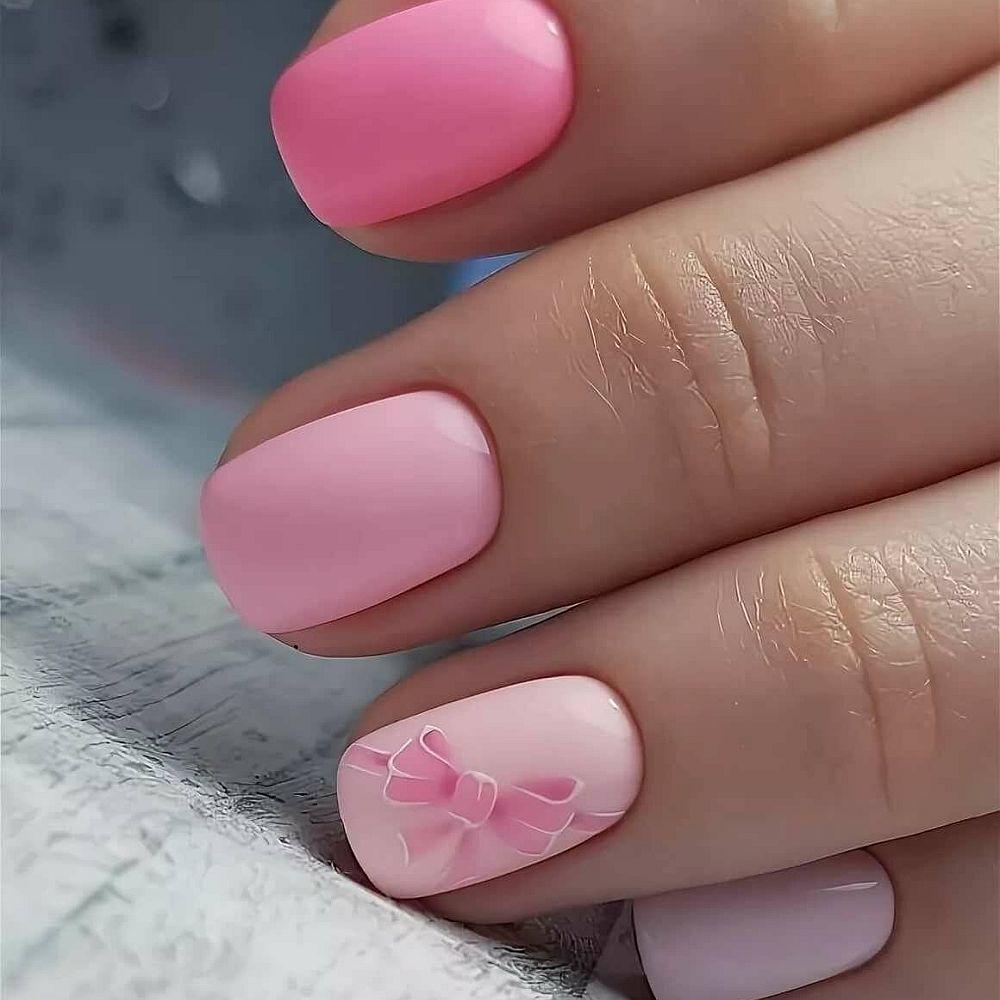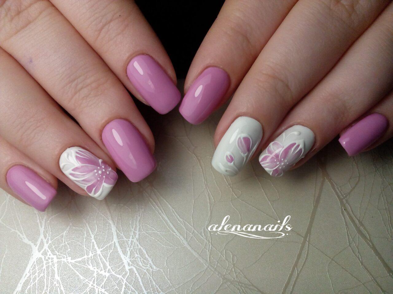 Все розовые тона неизменно бьют рекорды популярности у женщин в каждом сезоне года. Однотонный нейл-арт можно удачно дополнять флористическими рисунками, лунками, френчем.