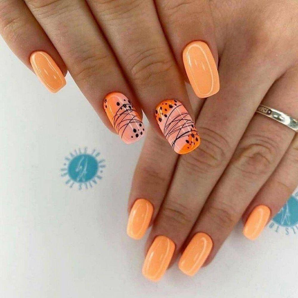 Размытый оранжевый тон прекрасно подходит для повседневного нейл-арта. Ноготки с ним выглядят очень ухоженно.