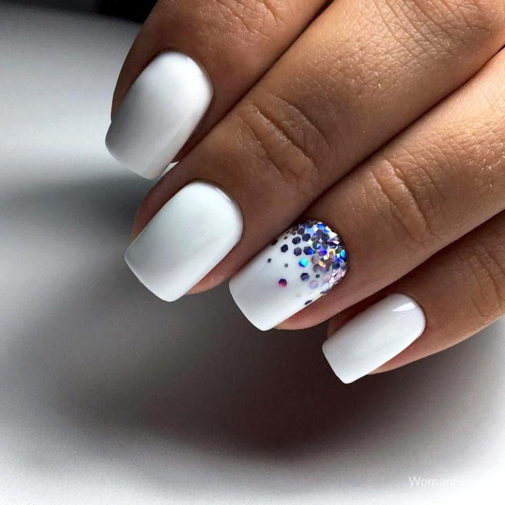 Кажется блестки уже никогда не выйдут из моды нейл арта. Несмотря на всю помпезность, этот вариант дизайна выбирает большое количество женщин. Чтобы снизить эффект новогодней елки, блестки сейчас используют в самом выгодном варианте. Можно покрыть несколько ногтей, а можно растянуть их от кутикулы к краю, создавая эффект градиента.