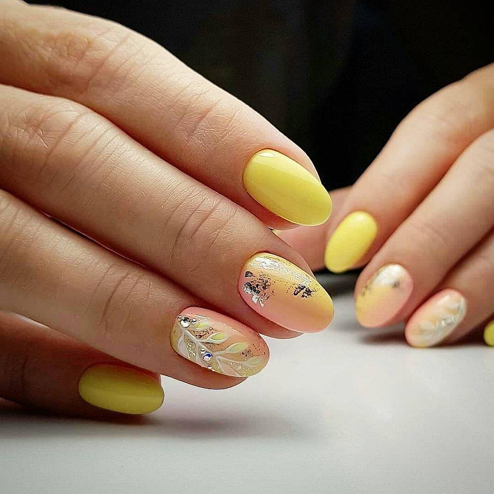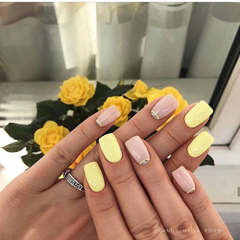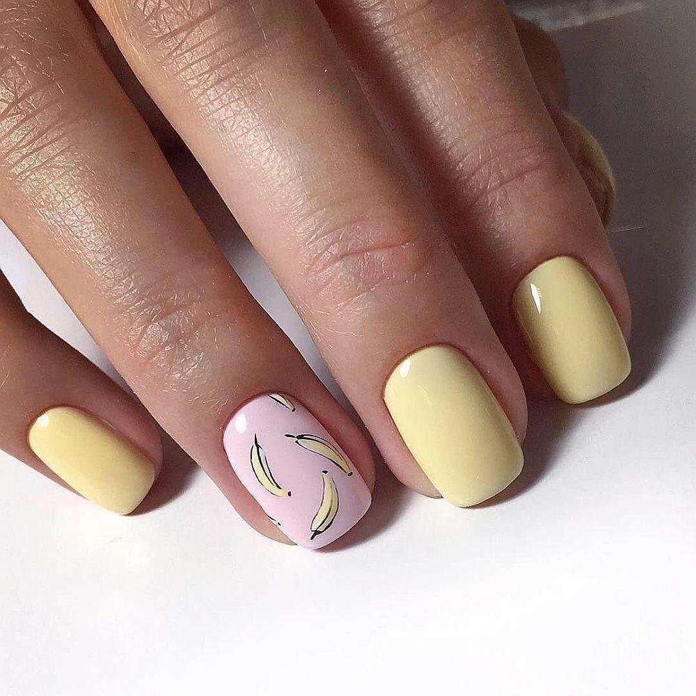 Бледный жёлтый – шикарная основа для летнего ногтевого дизайна. Его можно применять в технике омбре совместно с розовым, сиреневым или голубым.