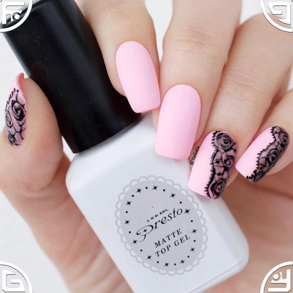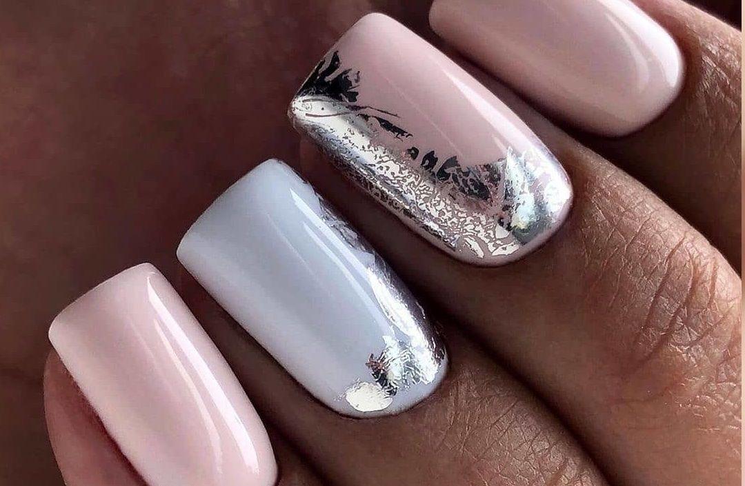 Добиться изящности и нежности нейла-арта с розовым лаком совсем несложно. Его можно умело сочетать с серебристыми полосками, флористическим рисунком, кусочками фольги.
