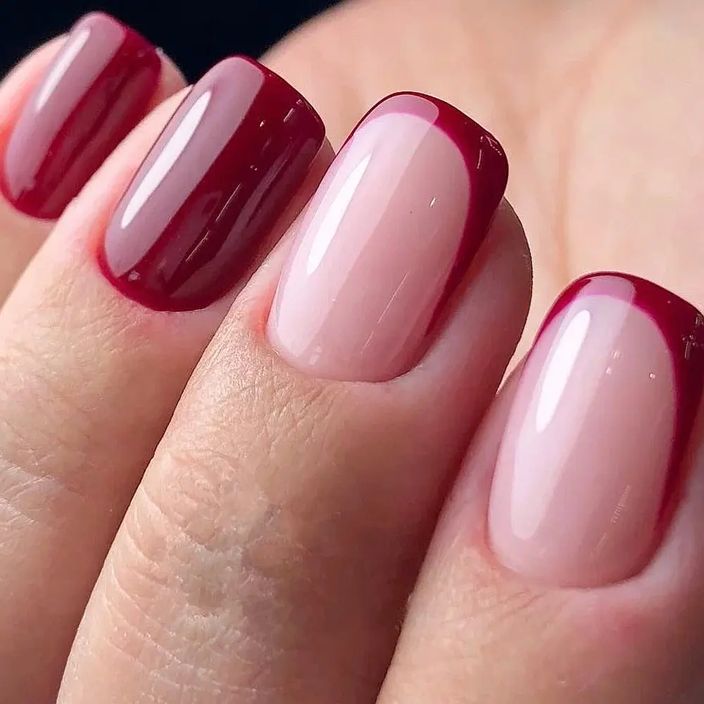 - Лунный маникюр+френч. Такое сочетание подходит для длинных ноготков. Визуально уменьшает размер ногтя. Нежно-розовый оттенок и белый цвет — превосходная комбинация.