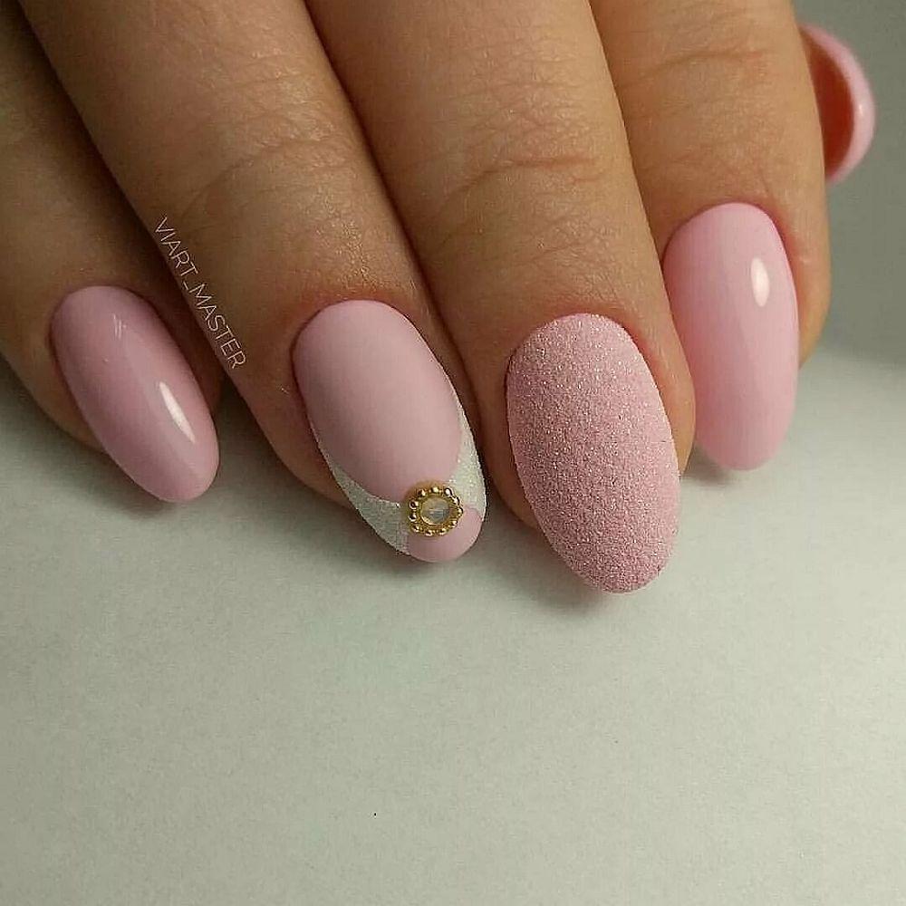 Романтизм такого оттенка трудно переоценить. Когда девушке хочется нежности, легкости и красоты, она начинает выбирать тот самый розовый из всех его оттенков. Нежно-розовый тон на короткую длину ногтевой пластины будет беспроигрышным вариантом.