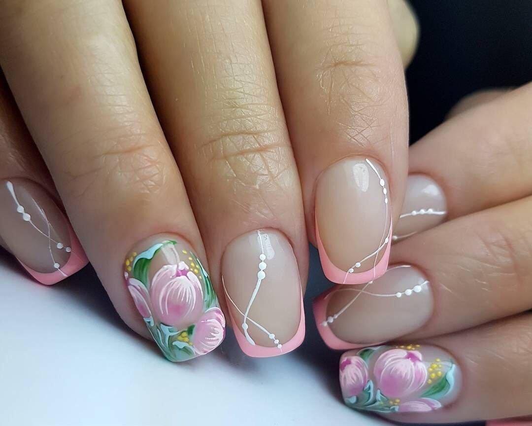 - Создаем деликатные дизайны. Нежный маникюр также отличается использованием деликатных дизайнов, которые добавляют особую изысканность и стильность. Одним из популярных вариантов является французский маникюр с пастельными оттенками, где белый кончик ногтя сочетается с нежным основным цветом. Также можно использовать легкие геометрические узоры, цветочные мотивы, нежные стрелки или нежные блестки.