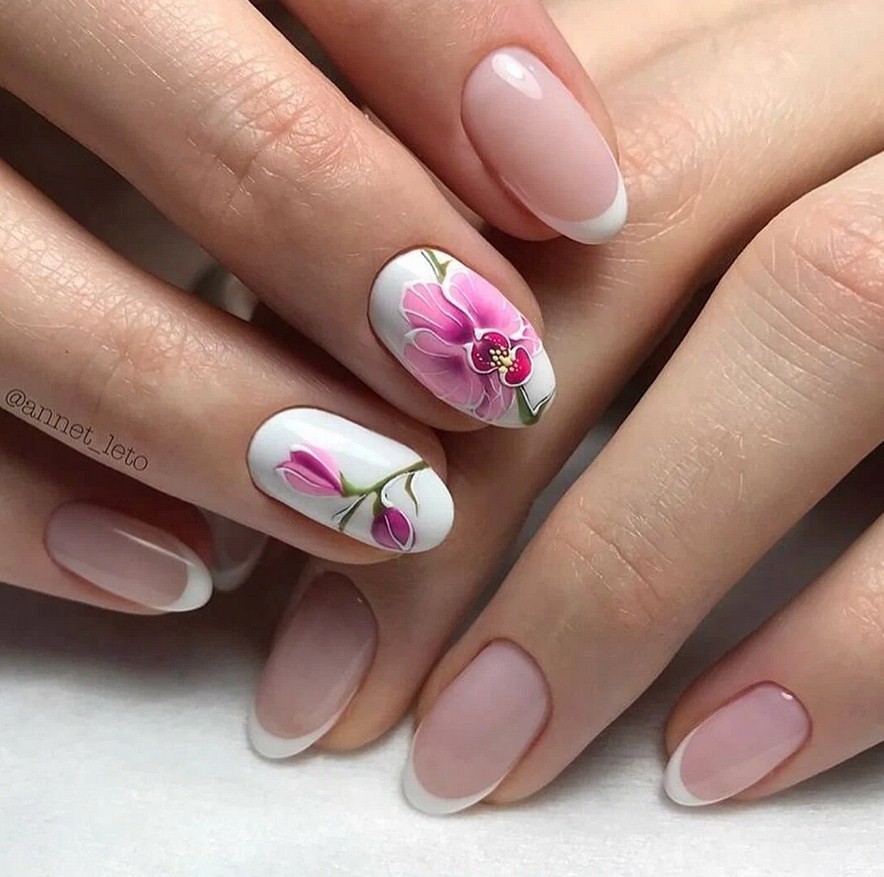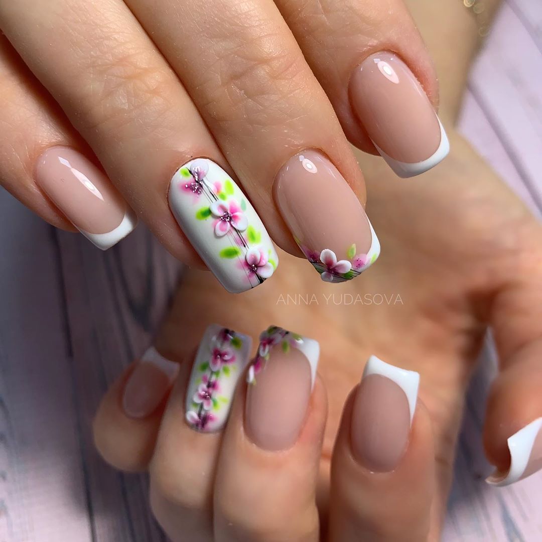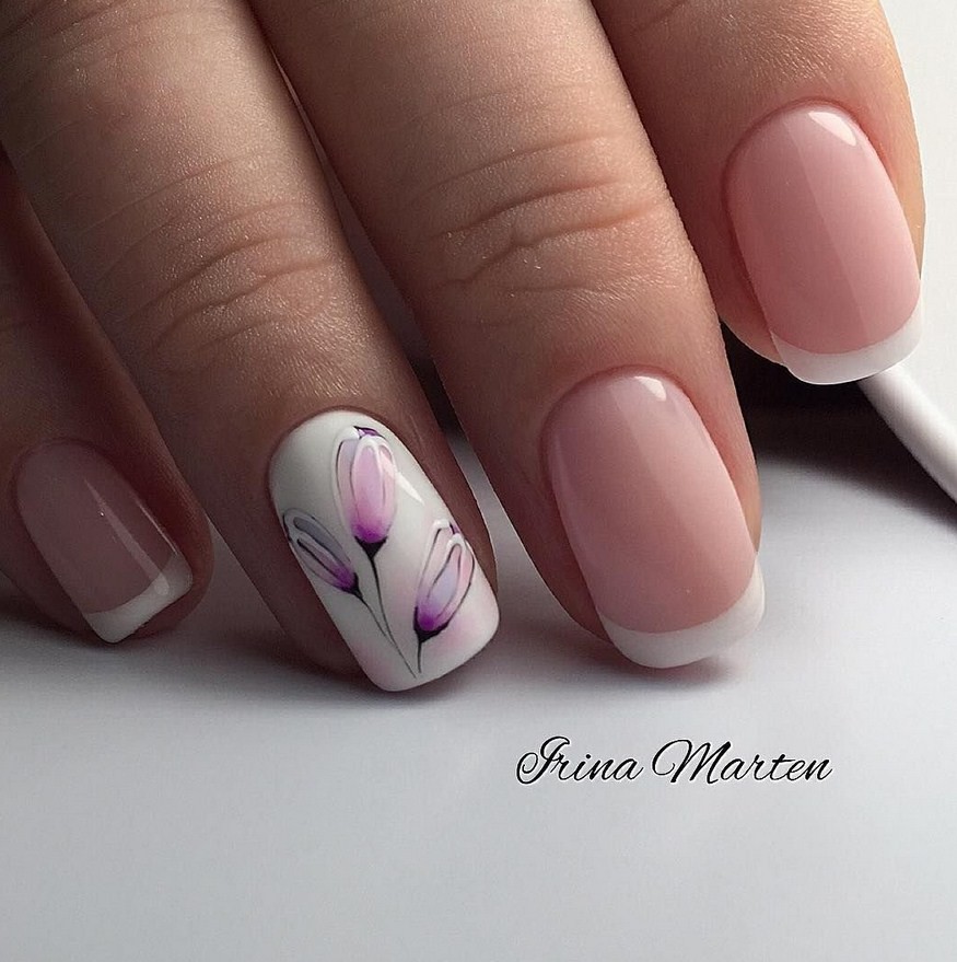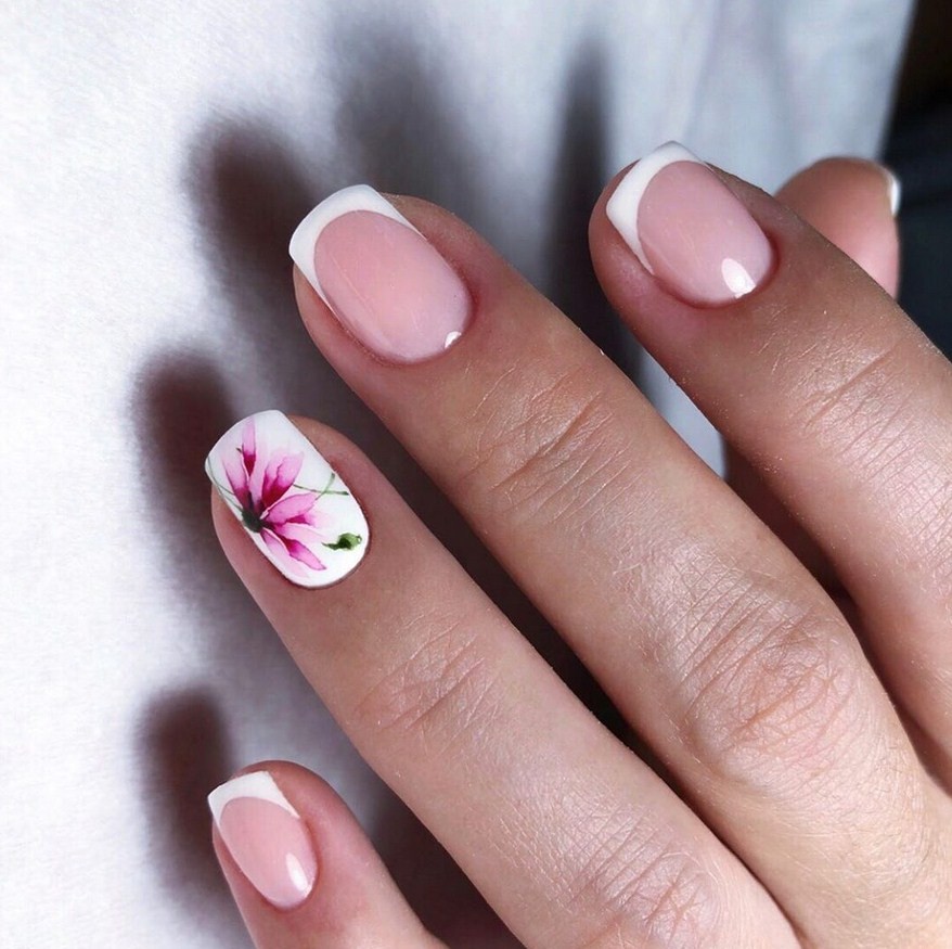 Почему-то принято считать, что французский вариант минималистичен по своей природе. А поэкспериментировать? Хотя бы вот так… френч с цветами