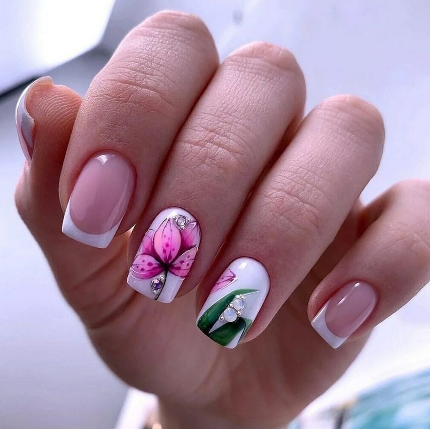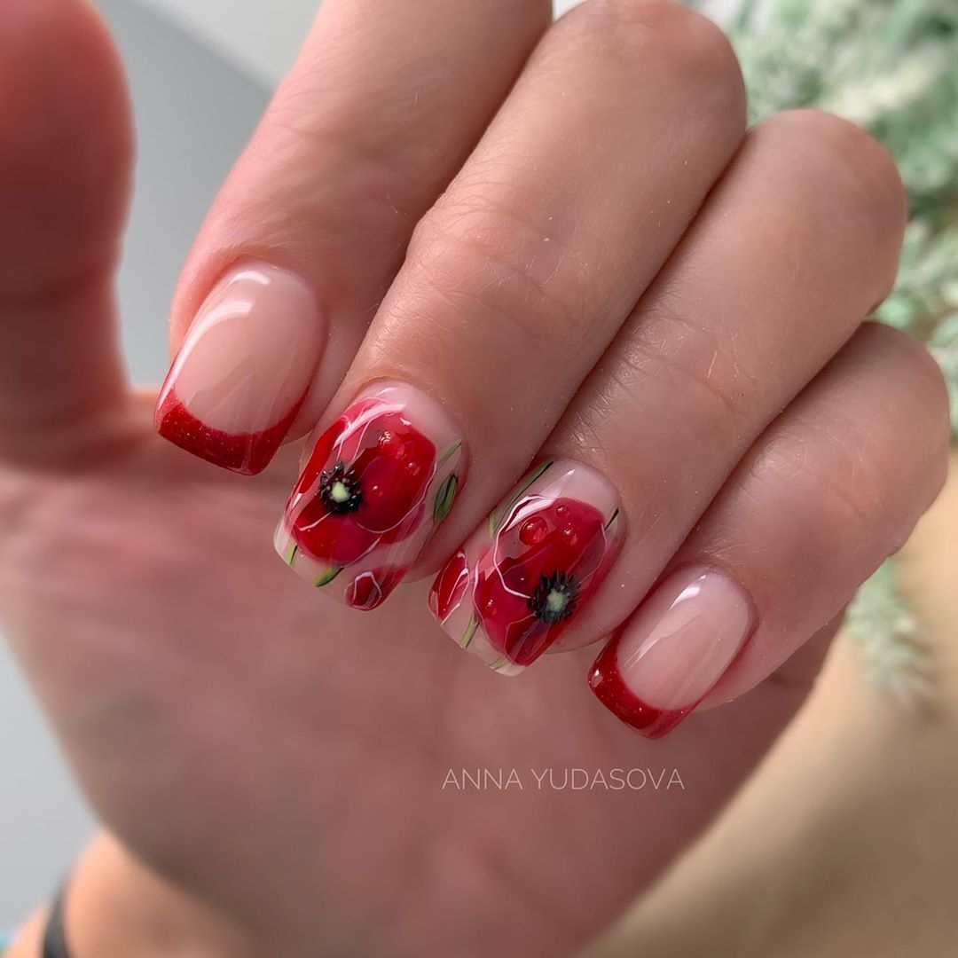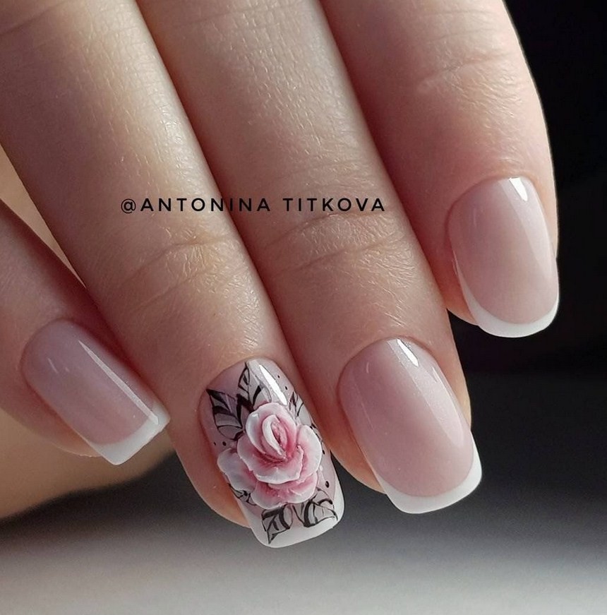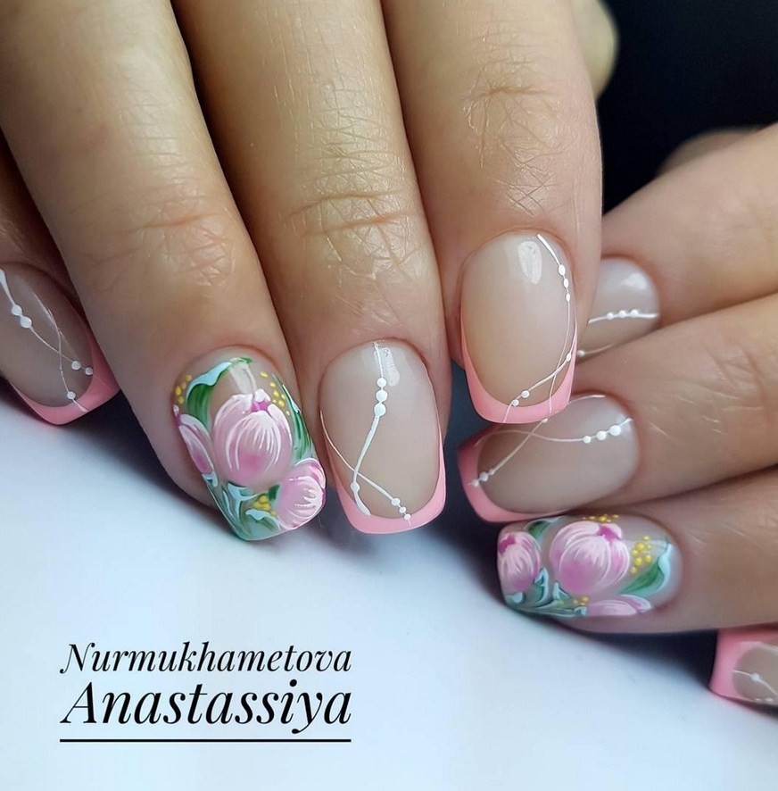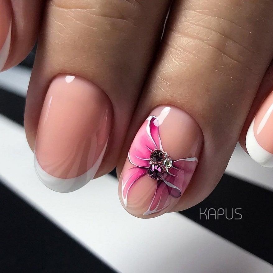 Почему-то принято считать, что французский вариант минималистичен по своей природе. А поэкспериментировать? Хотя бы вот так… френч с цветами