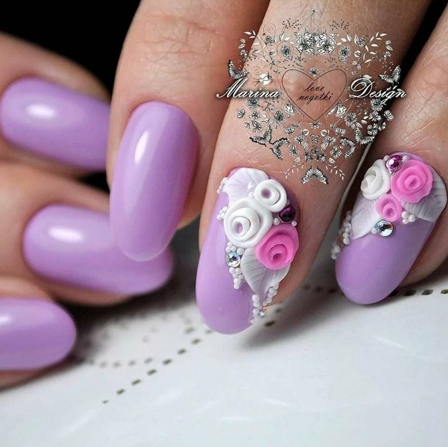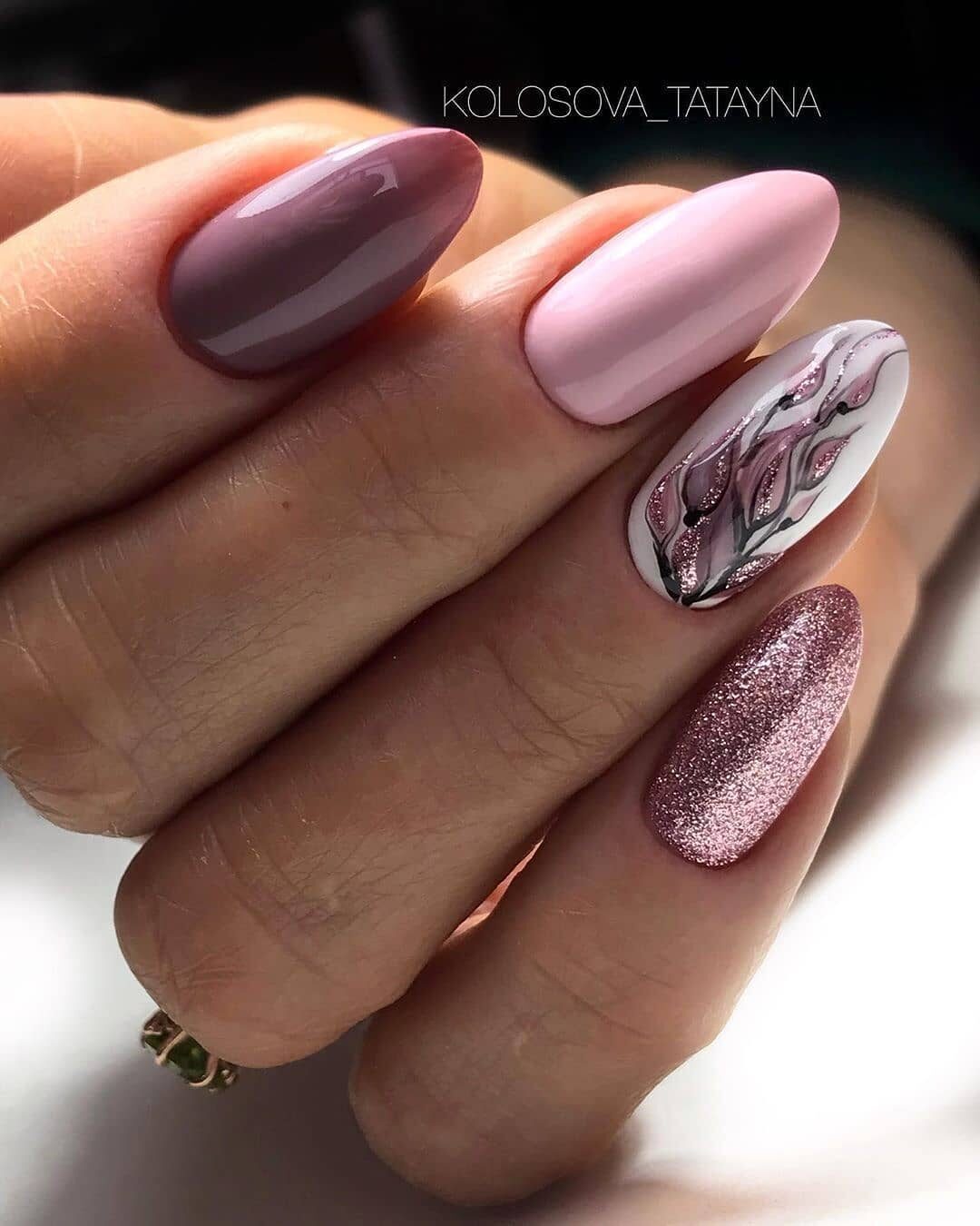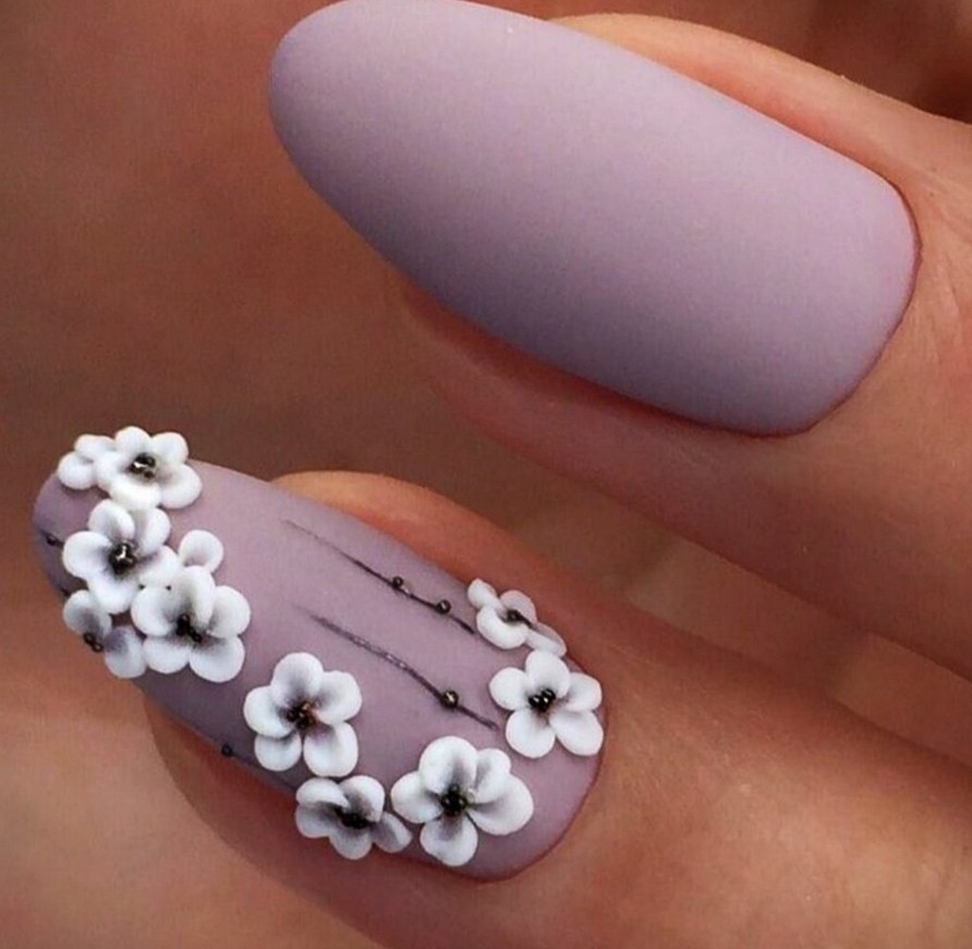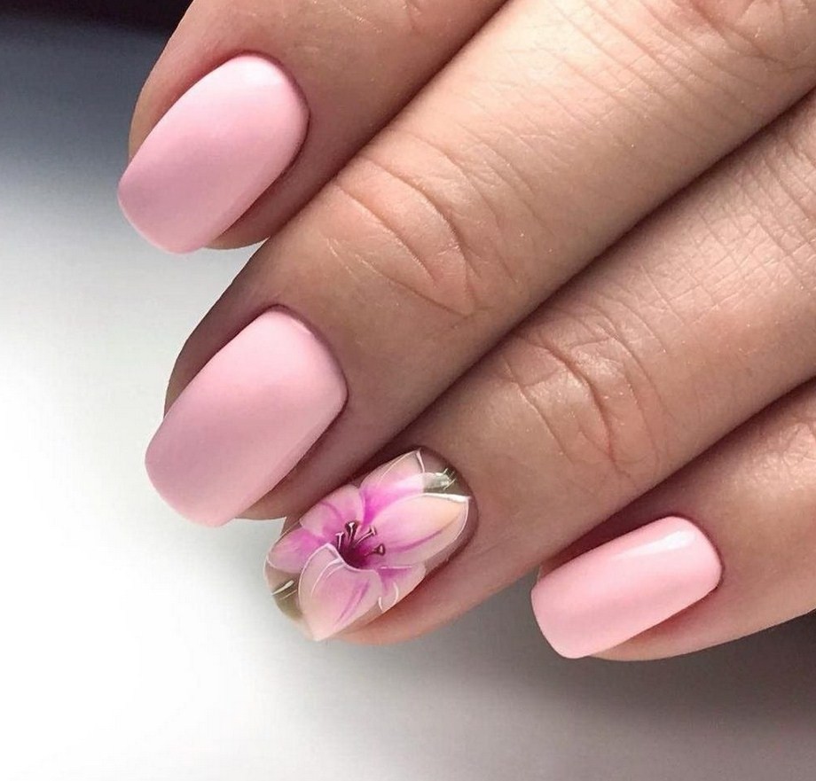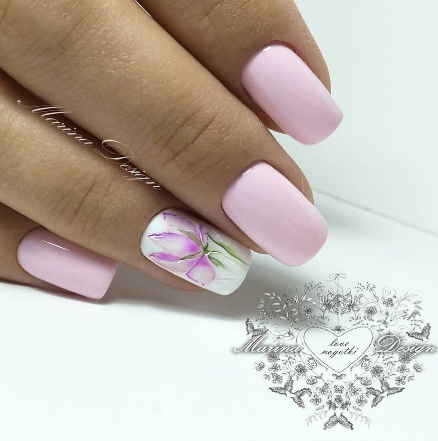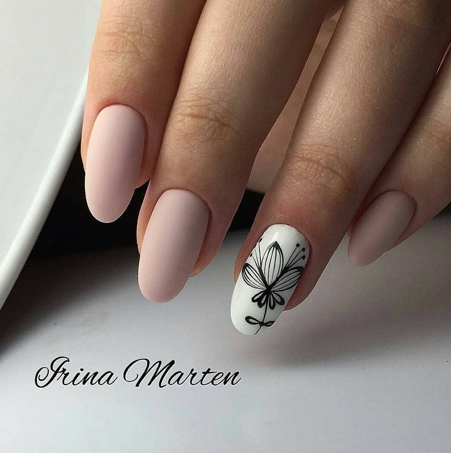 Если вы нанесете однотонный лак светлого оттенка (матовый или глянцевый), а форма ваших ноготков – овал или миндаль, то уже окажетесь в тренде. Но если сделаете маникюр с дизайном – это внесет «изюминку», раскроет индивидуальность.