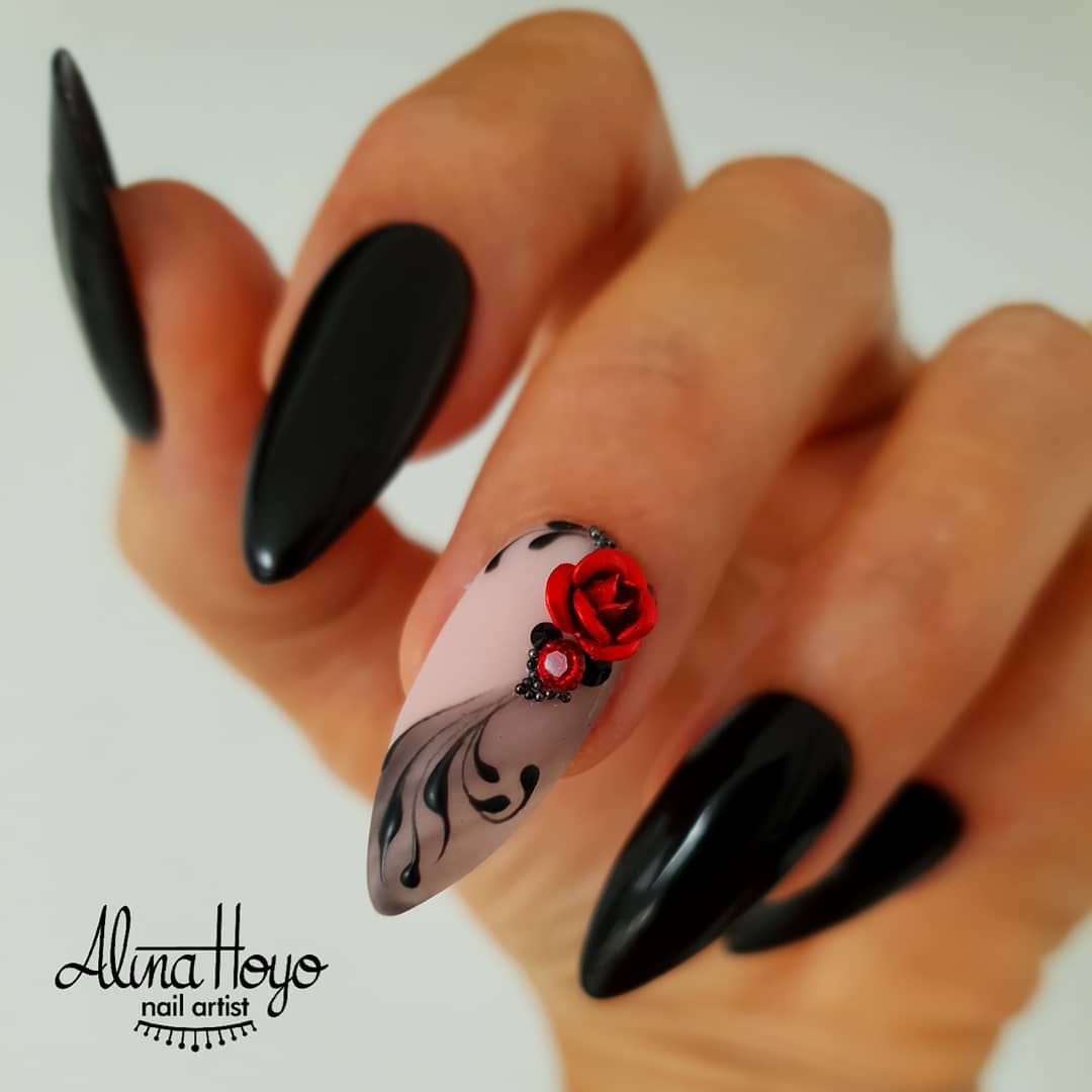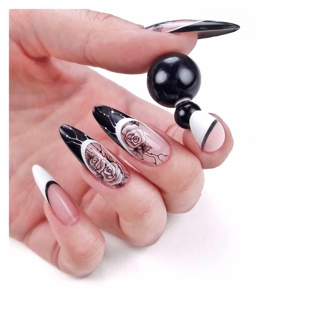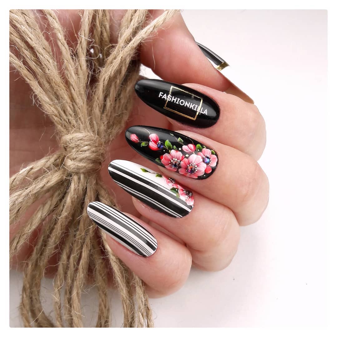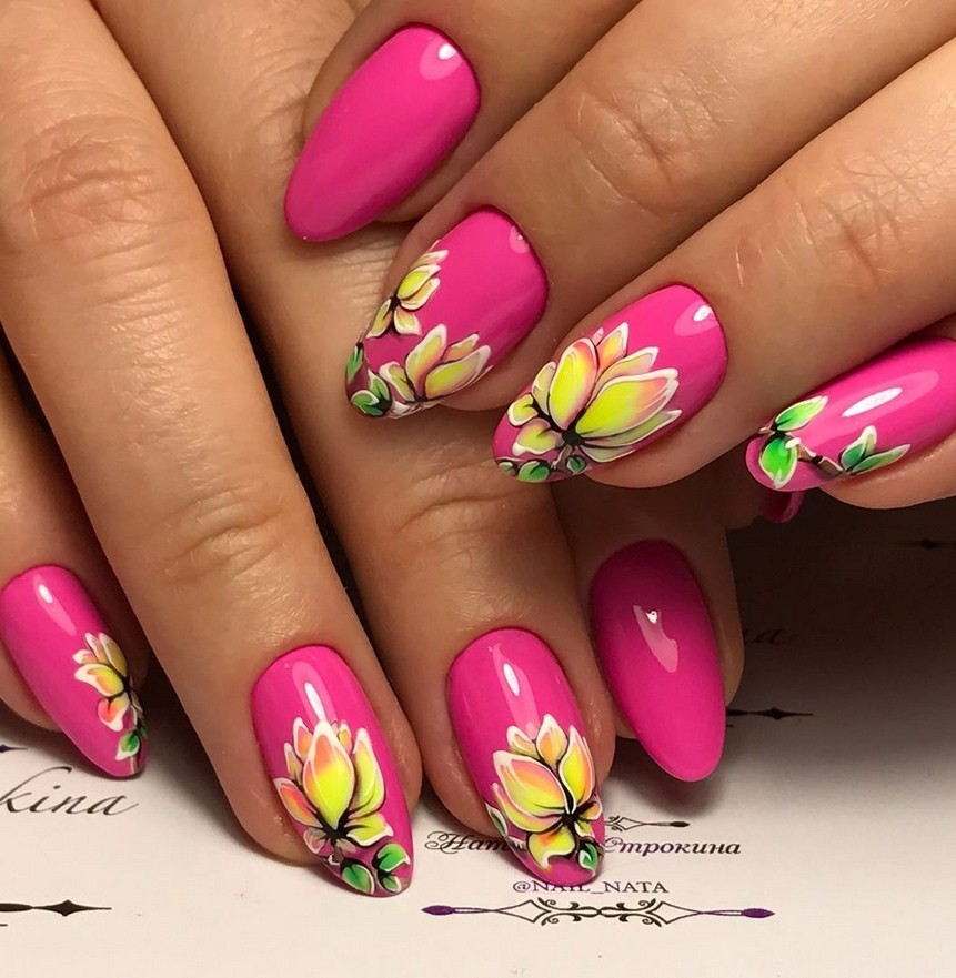 Миндалевидная форма сама по себе говорит о романтичности натуры своей обладательницы. Она отлично уживается со всеми вариантами цветочного дизайна — от нежных рисунков пионов и роз до стильных кактусов с забавными шипами. Выбирайте свой декор под тот образ, который хотите создать — романтика, дерзкий кэжуал или стильный гранж.