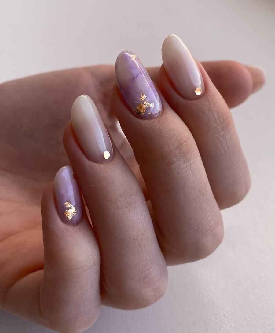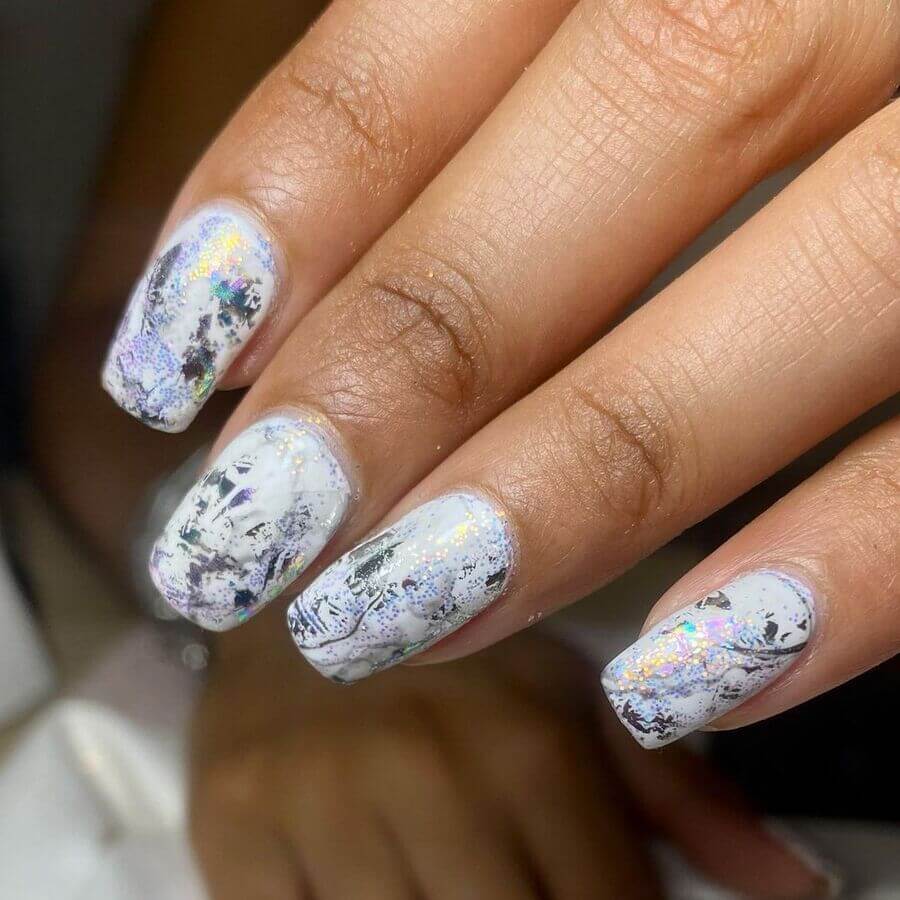 Комбинация зеркального и мраморного маникюра – отличная идея, которую оценят модницы, любящие лаконичность.