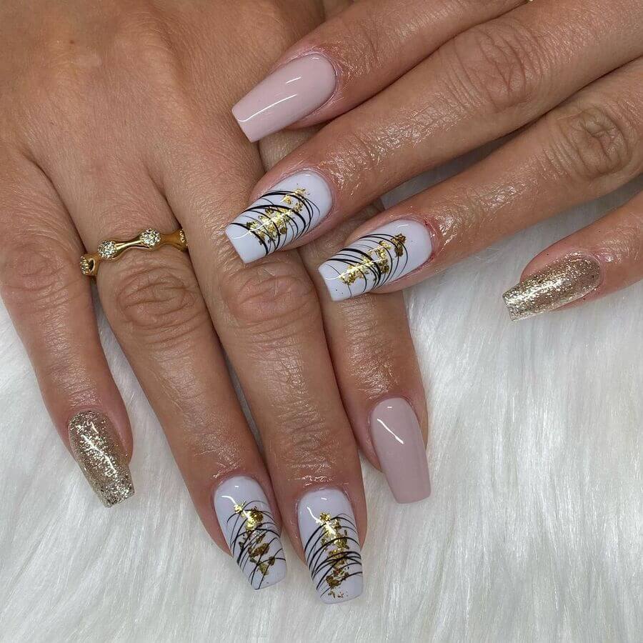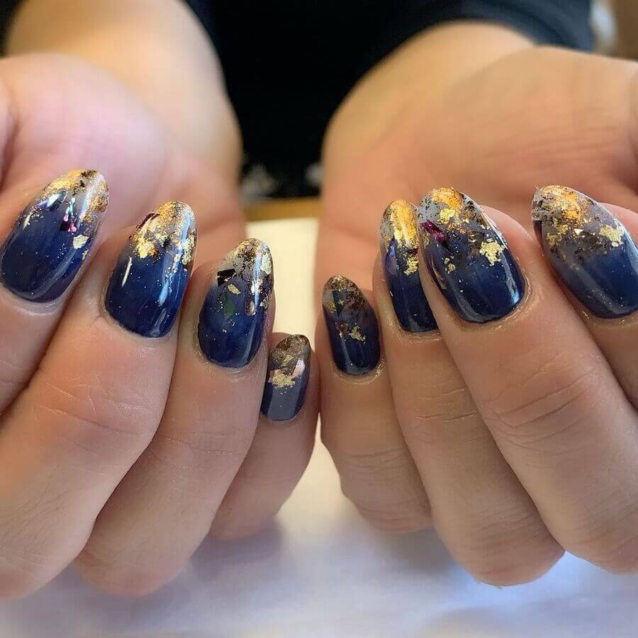 Черное золото. Еще один интересный праздничный и яркий Нейл-арт. Основа — черный цвет и золото. Элегантно и экстравагантно. Идеально для длинных или квадратных с закругленными кончиками. Такой вариант трендовых ногтей не нуждается в дополнительных украшениях. Хорошо подходит для создания вечернего образа.