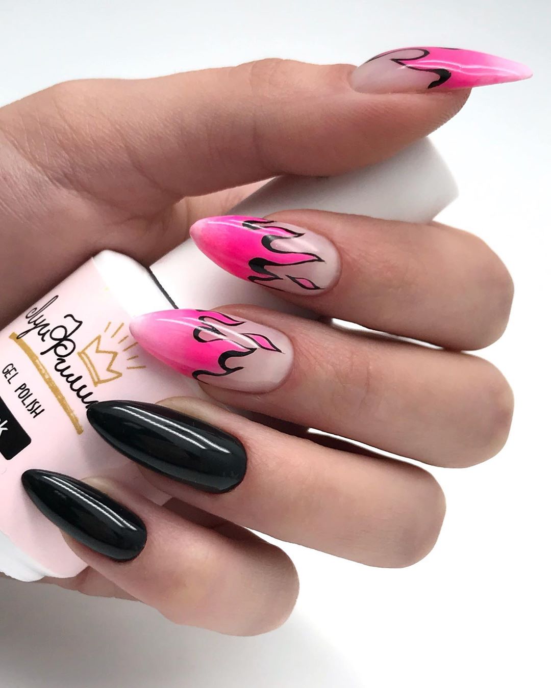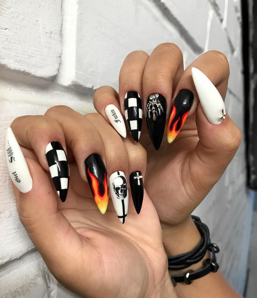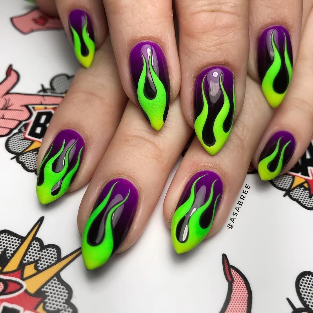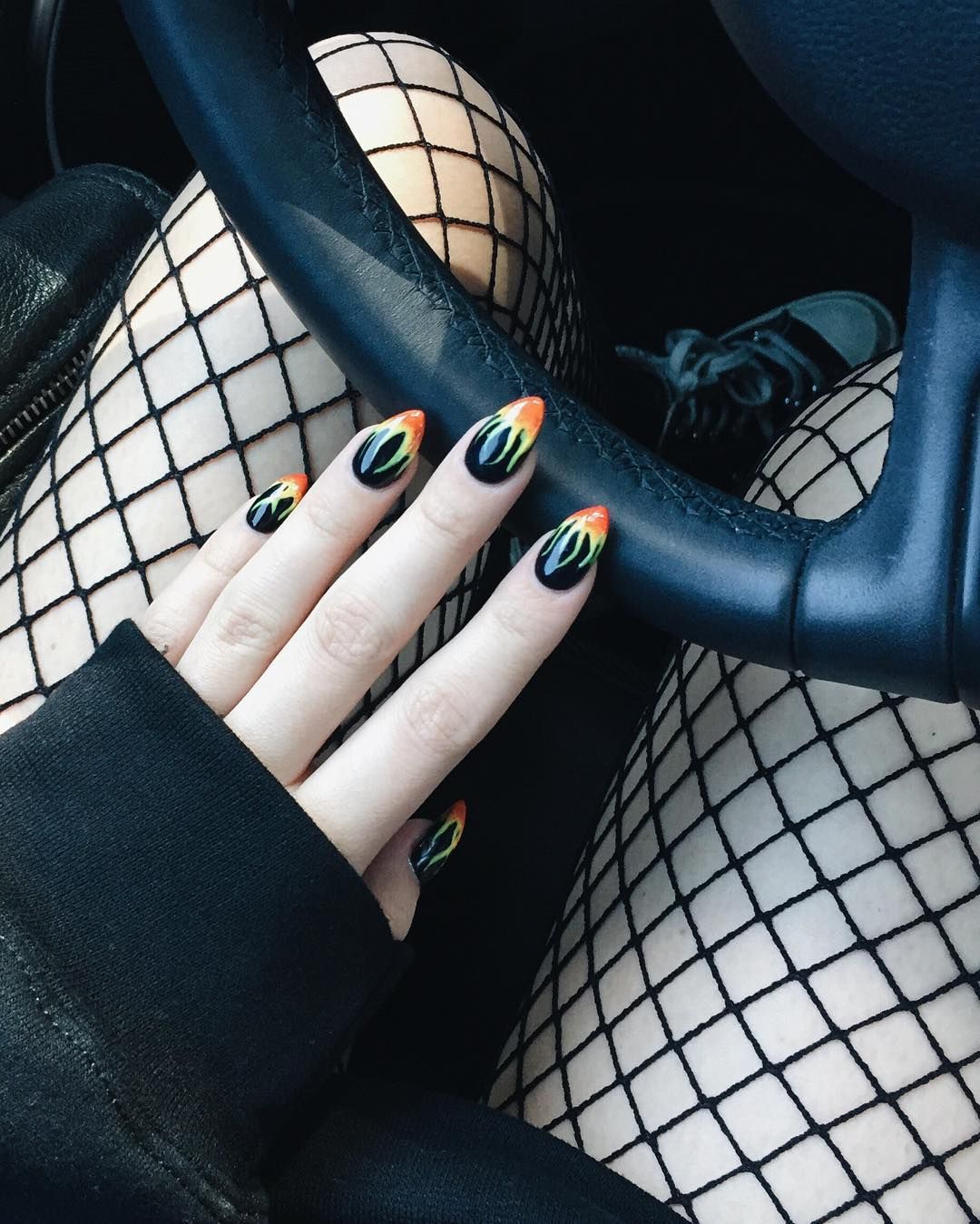 Огненные языки будут очень эффектно смотреться в нэйл-дизайне на тематику Хэллоуина.