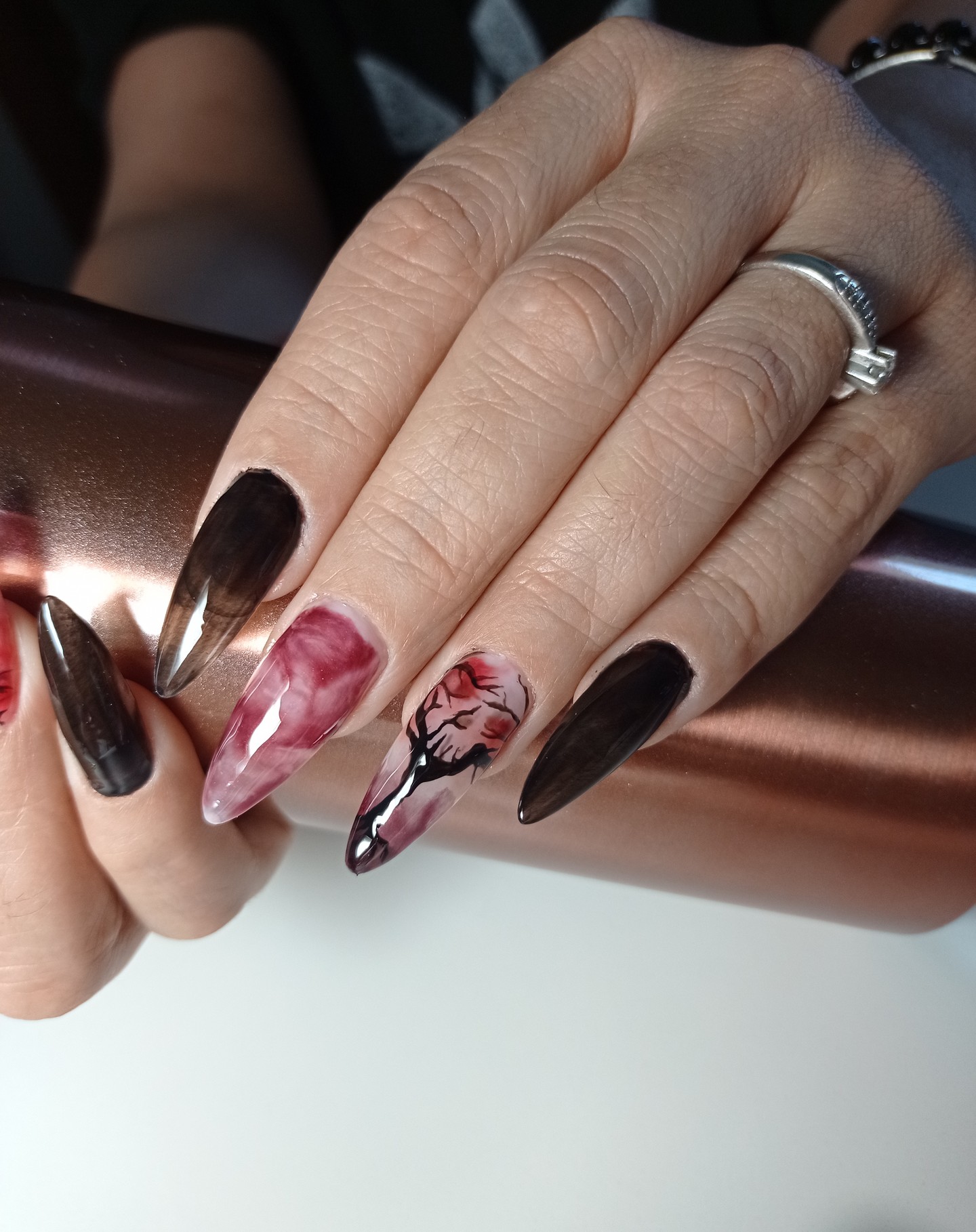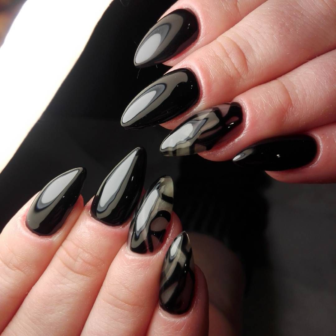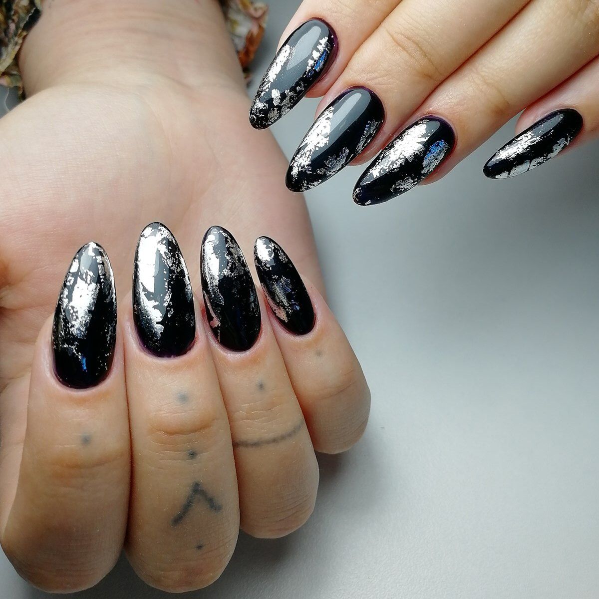 Если вы предпочитаете удобный повседневный маникюр с “магическими” элементами, выбирайте форму ногтей “миндаль”. Длина ногтей обычно от короткой до средней — достаточно длинные, чтобы кончик был виден и чтобы изменить дизайн в соответствии с вашим стилем. Он имеет темный, таинственный и элегантный вид, который присущ готам.