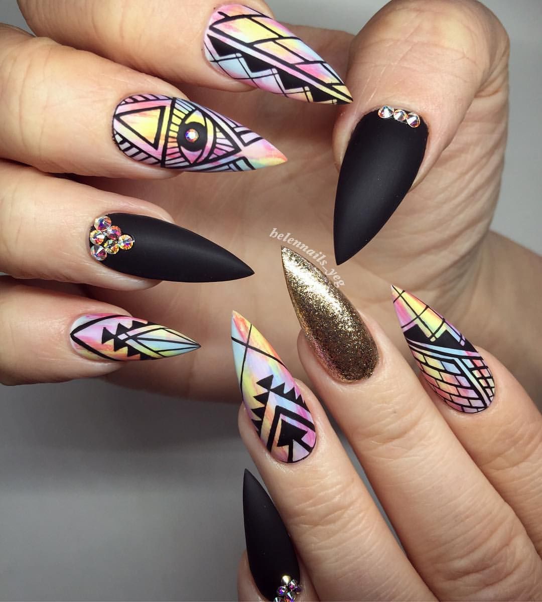 Ногти-стилеты популярны в готической культуре, поскольку они придают дерзкий драматический вид. Это длинные тонкие ногти с заостренными кончиками, похожие на шпильки. Классическими цветовыми сочетаниями для маникюра в готическом стиле являются черный и белый, красный или серый, но в современном нейл-арте используются также нюдовые, оранжевые и даже розовые тона. Ногтевая пластина обычно создается с помощью искусственных материалов (акрила или геля), после чего ногти дополнительно украшаются: