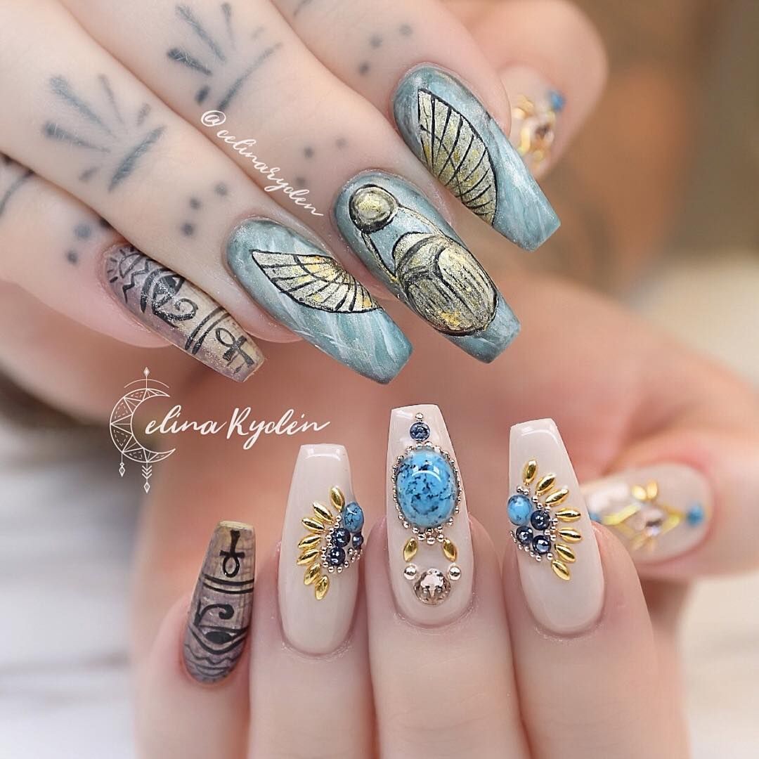 Большая длина ногтей-это полотно, которое предоставляет большой простор для возможностей. Вы можете изобразить на них все, что угодно: от персонажей фильмов и мультсериалов до готических узоров и картинок. Мастеру придется дольше потрудиться над созданием подобного дизайна, но вы будете впечатлены результатом.