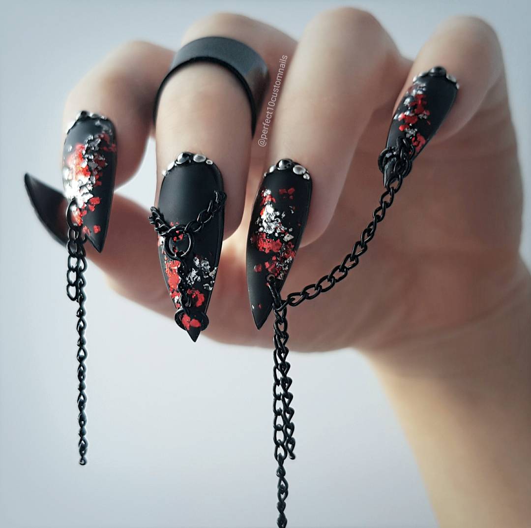 Оригинальный готический маникюр с дизайном, напоминающий когти: