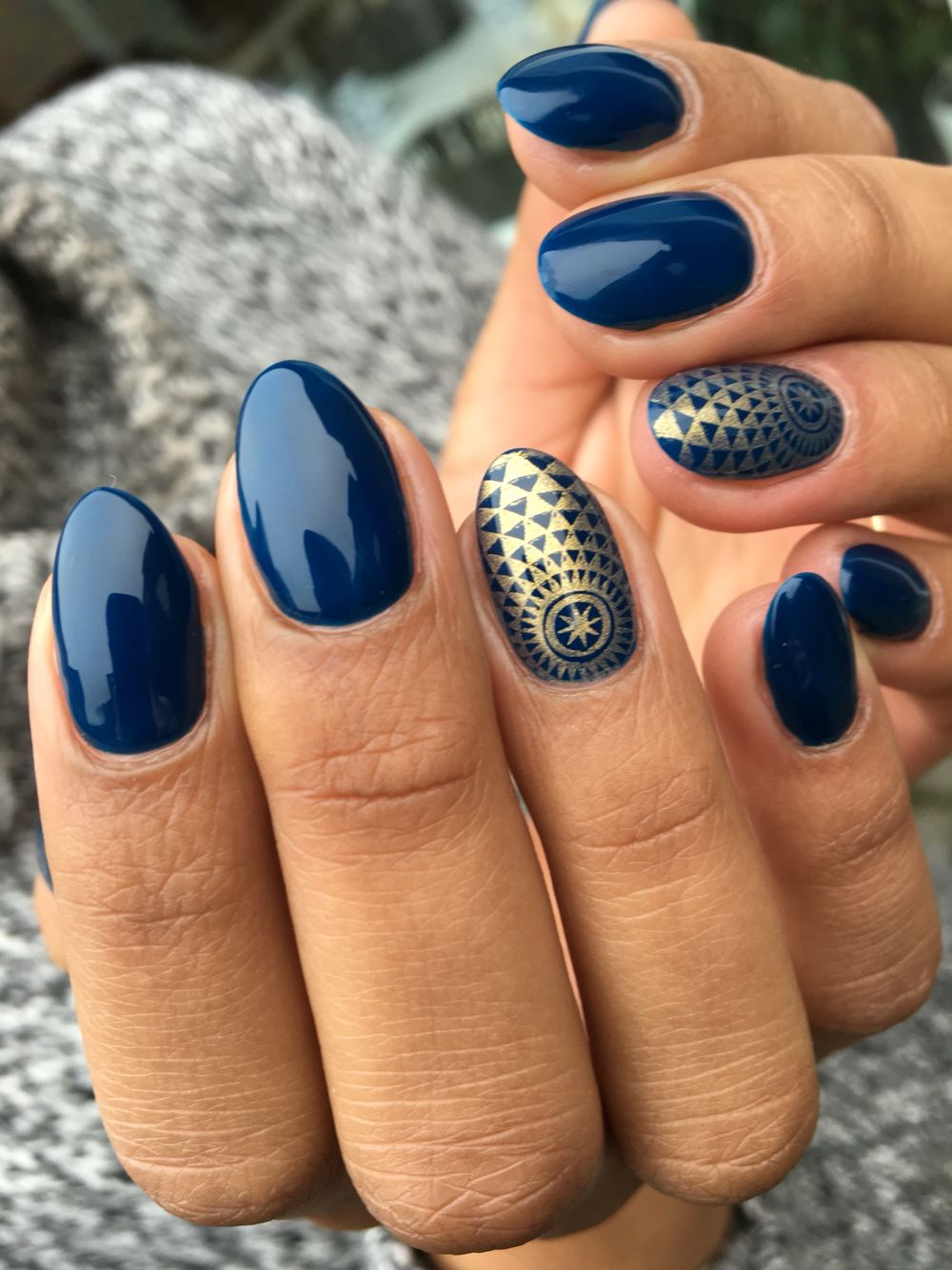 Вы можете использовать однотонный цвет или создать сложный и детализированный дизайн. Популярным вариантом является создание темного омбре маникюра с массивными металлическими деталями.