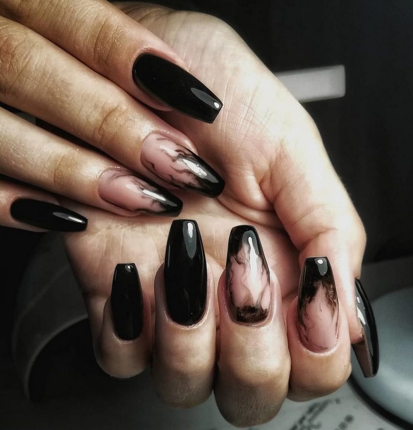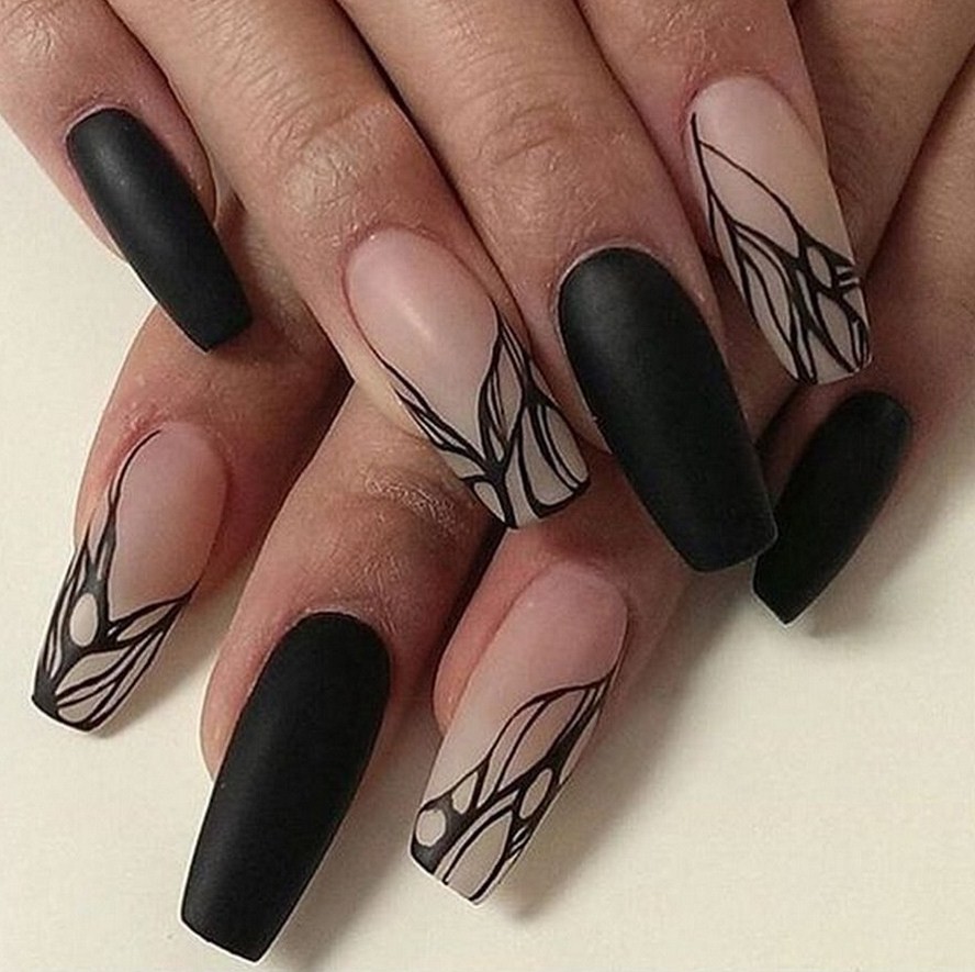 Черные рисунки на ногтях смотрятся аристократично, загадочно, женственно.