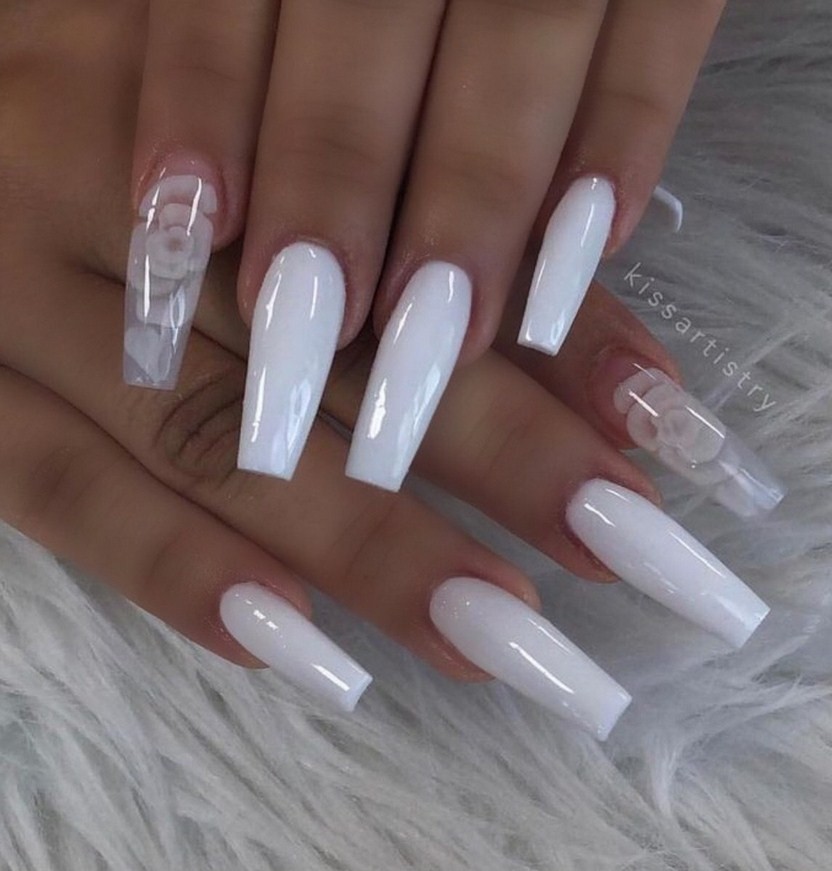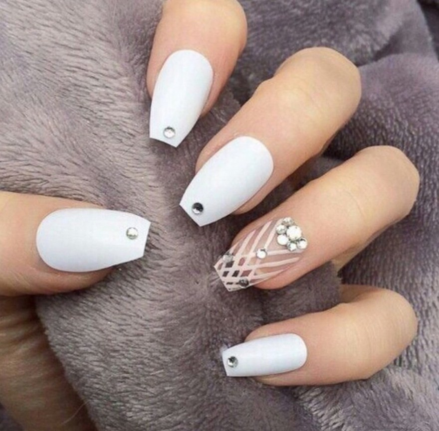 Выбирая нейл-идею для повседневного ношения, стоит обратить внимание на однотонное белое покрытие балеринки. Оно будет особенно эффектным в сочетании со смуглой кожей рук