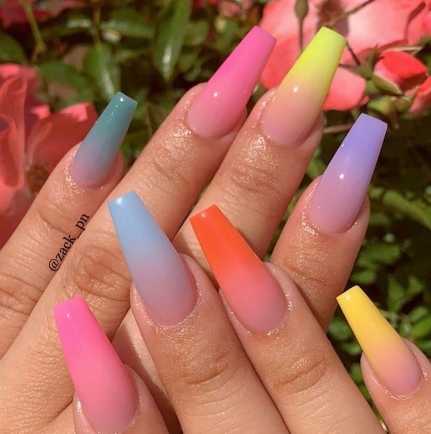 На пике популярности остается и омбре. Очень ярким и нарядным станет маникюр в коралловых и персиковых оттенках, который идеально впишется в летний образ. Но переходы цветов могут быть любыми, и вы можете не ограничивать свою фантазию!