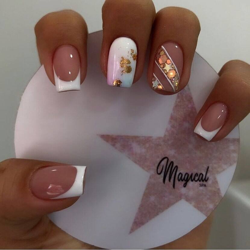 Френч маникюр ногтей 2021, красивый дизайн с рисунками, цветной