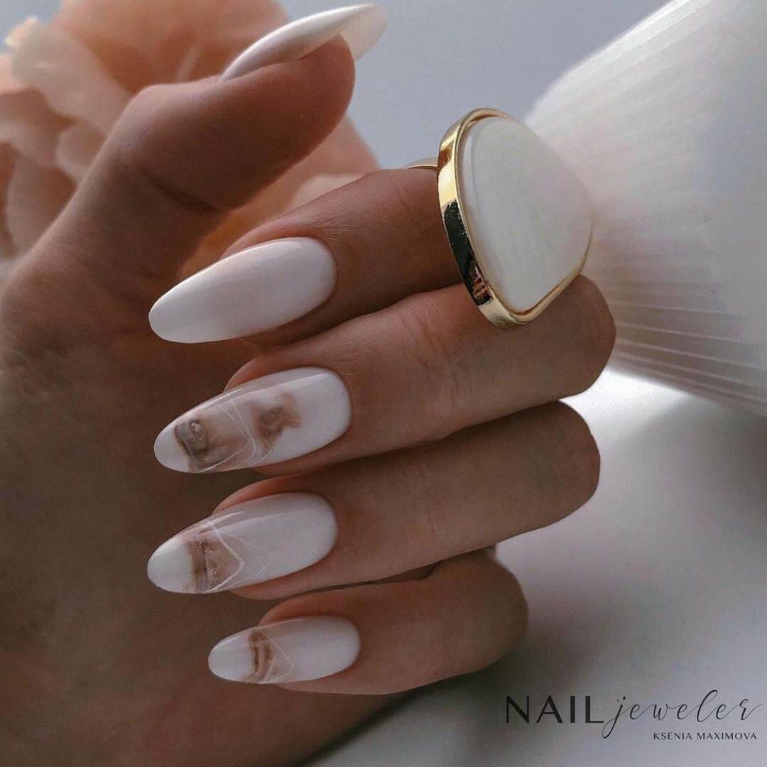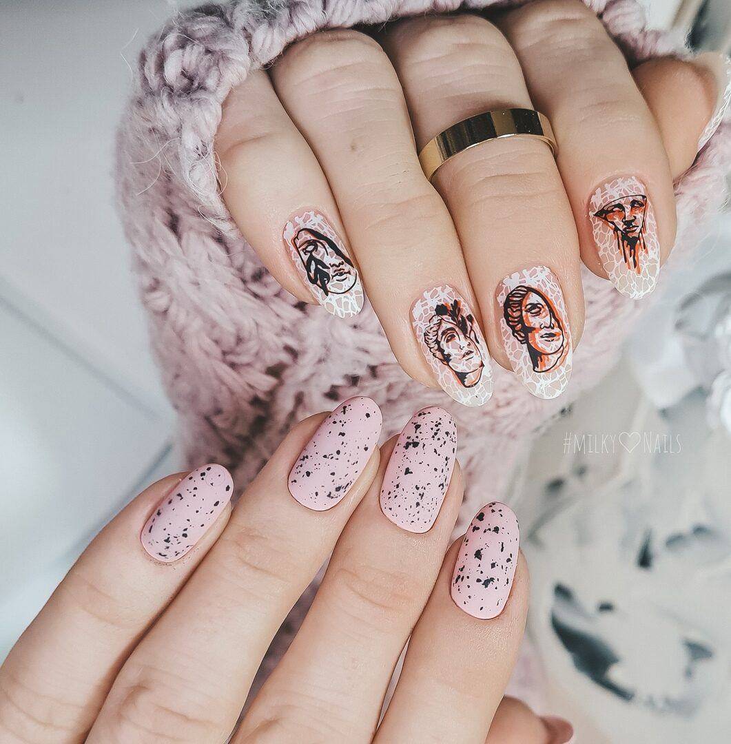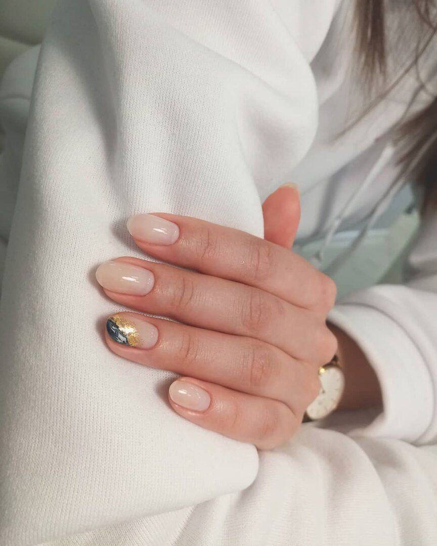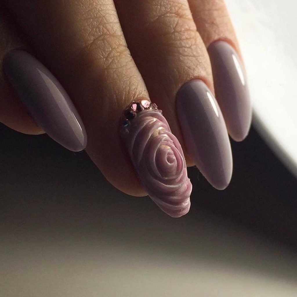 Если вы нанесете однотонный лак светлого оттенка (матовый или глянцевый), а форма ваших ноготков – овал или миндаль, то уже окажетесь в тренде. Но если сделаете маникюр с дизайном – это внесет «изюминку», раскроет индивидуальность.