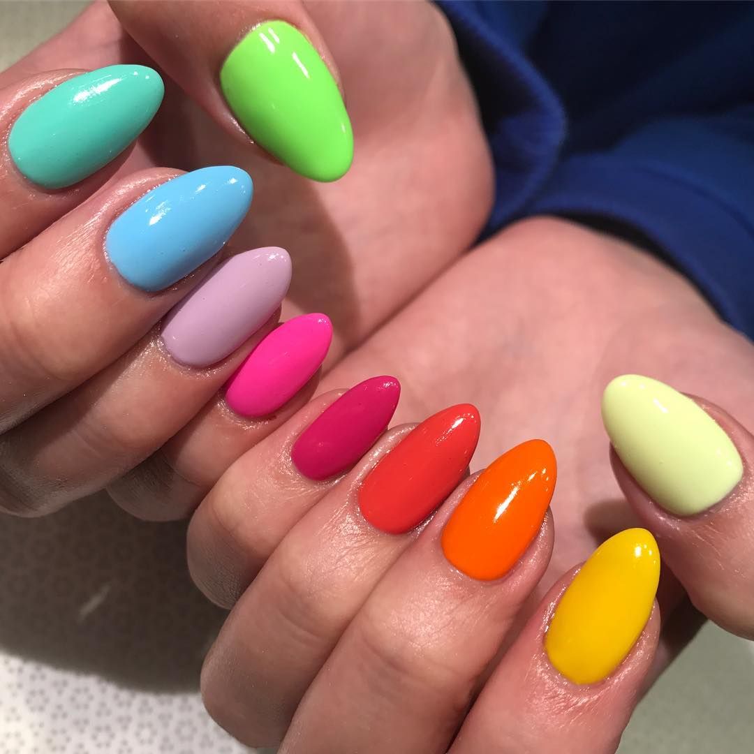 Сейчас в тренде маникюр с разным дизайном ногтей. Здесь требуется талант мастера, способный изобразить рисунок, совместить сезонные мотивы и различные стили. Допустимы яркие цветовые сочетания.