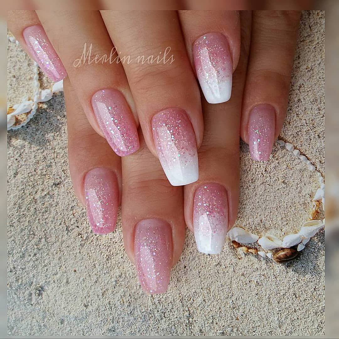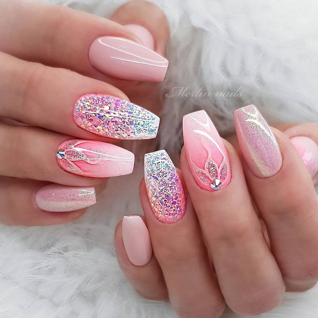 Кокетливый дизайн с использованием фактурного блестящего песка, конфетти и втирки.