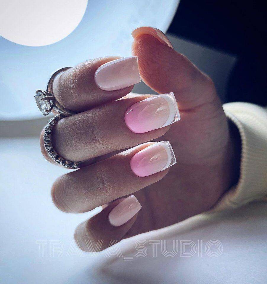 Классический френч маникюр, состоящий из нежно-розового основного цвета и белого кончика, также остается в тренде нежного маникюра. Однако, современные вариации френч маникюра также приобретают популярность. Например, френч с использованием нежных пастельных оттенков, таких как мятный, лавандовый, серый или песочный, выглядит очень стильно и нежно. Также популярным вариантом является «френч-градиент», когда цвет кончика постепенно переходит из одного оттенка в другой, создавая эффектный и оригинальный вид.