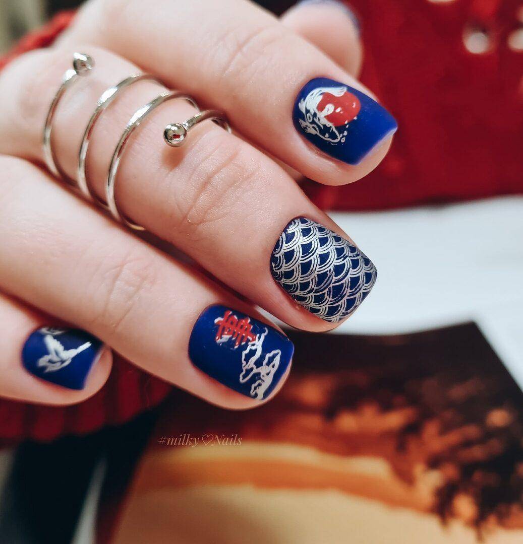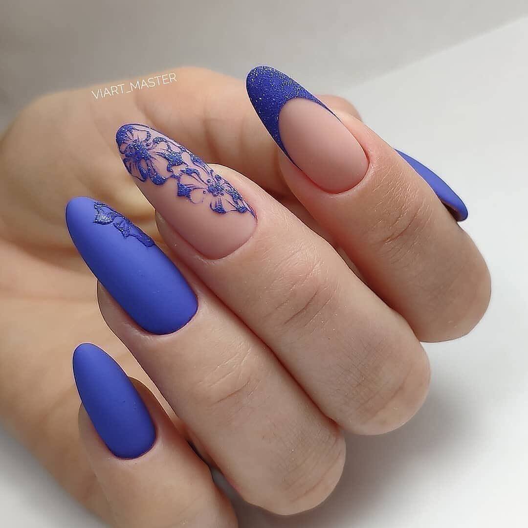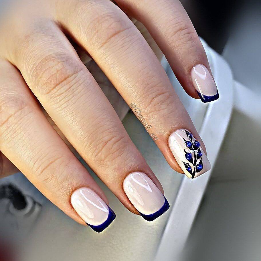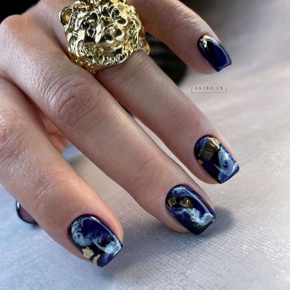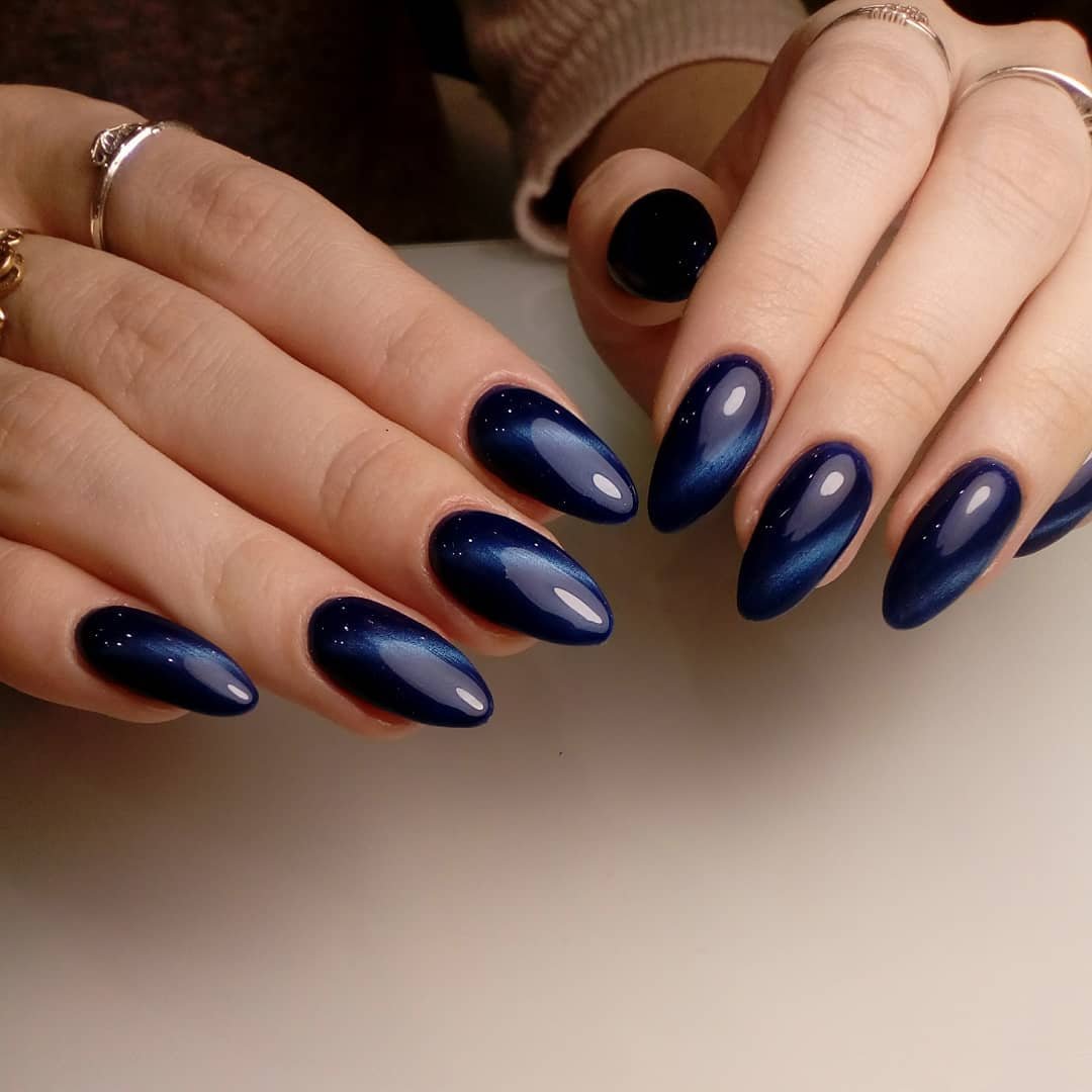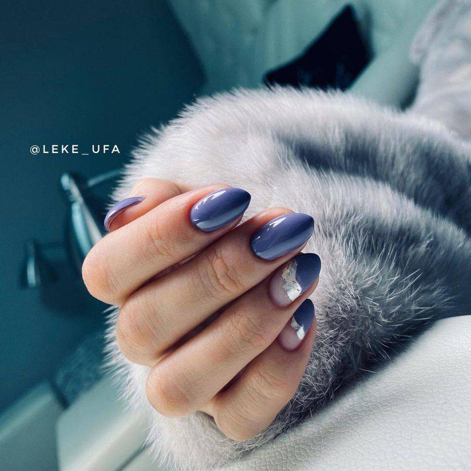 - темно-синий — стильный цвет для модного зимнего маникюра.