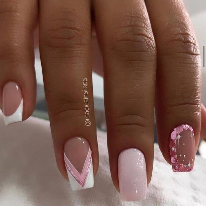 - Создаем деликатные дизайны. Нежный маникюр также отличается использованием деликатных дизайнов, которые добавляют особую изысканность и стильность. Одним из популярных вариантов является французский маникюр с пастельными оттенками, где белый кончик ногтя сочетается с нежным основным цветом. Также можно использовать легкие геометрические узоры, цветочные мотивы, нежные стрелки или нежные блестки.